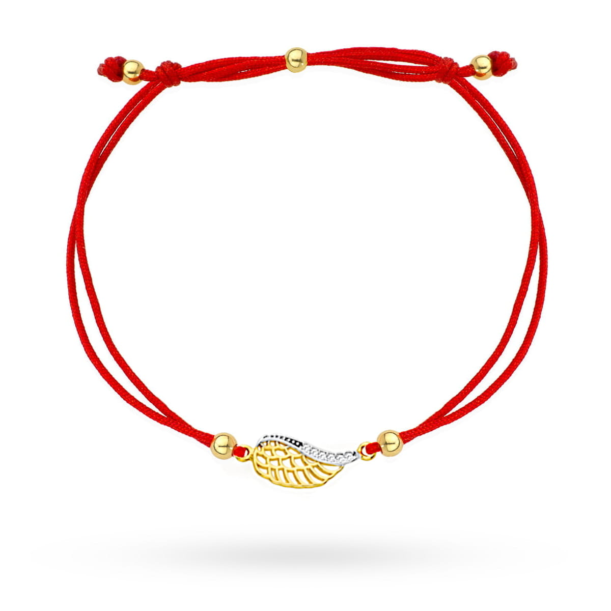 Bransoletka skrzydełko z cyrkoniami na czerwonym sznurku