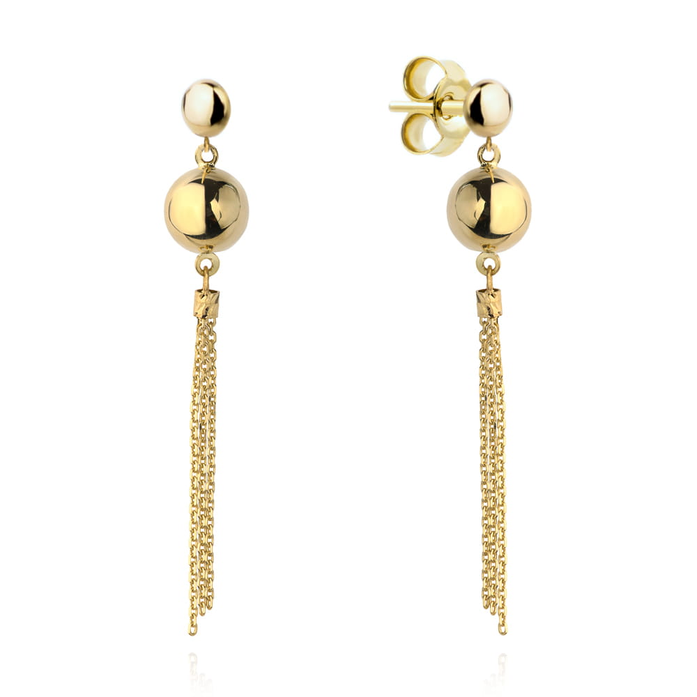 Kolczyki wiszące kulka z łańcuszkami