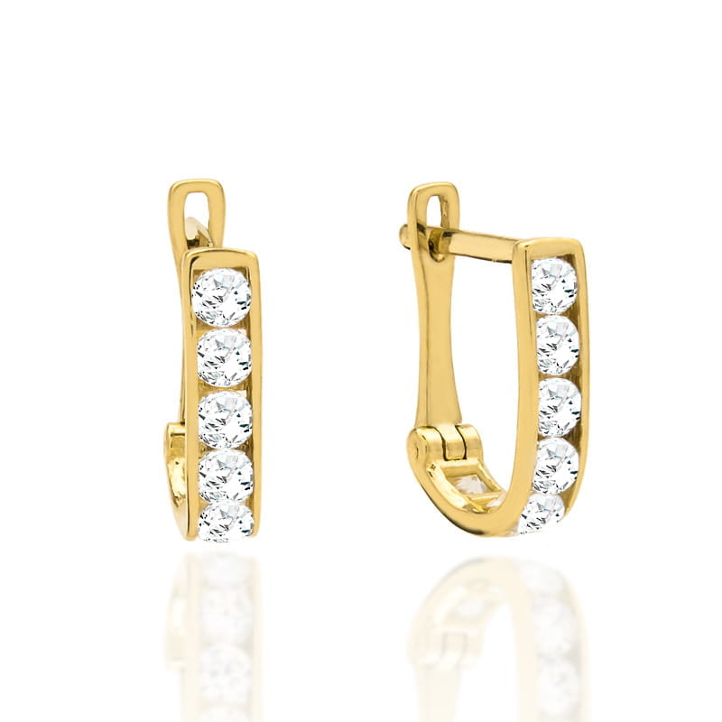 Precyzyjnie wykonane złote kolczyki próby 585. Doskonałe na prezent, imieniny, pierwszą komunię, bierzmowanie, ważny jubileusz.