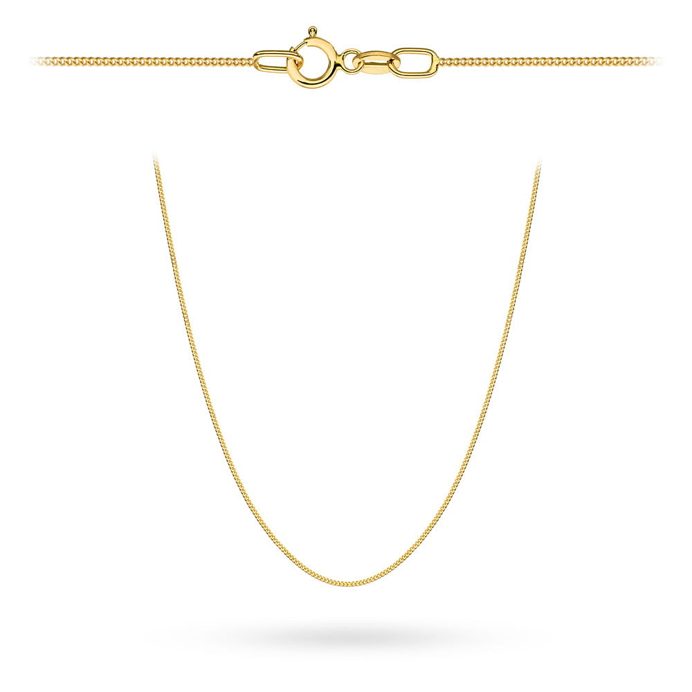 Precyzyjnie wykonany złoty łańcuszek próby 585. Splot pancerka gładka.