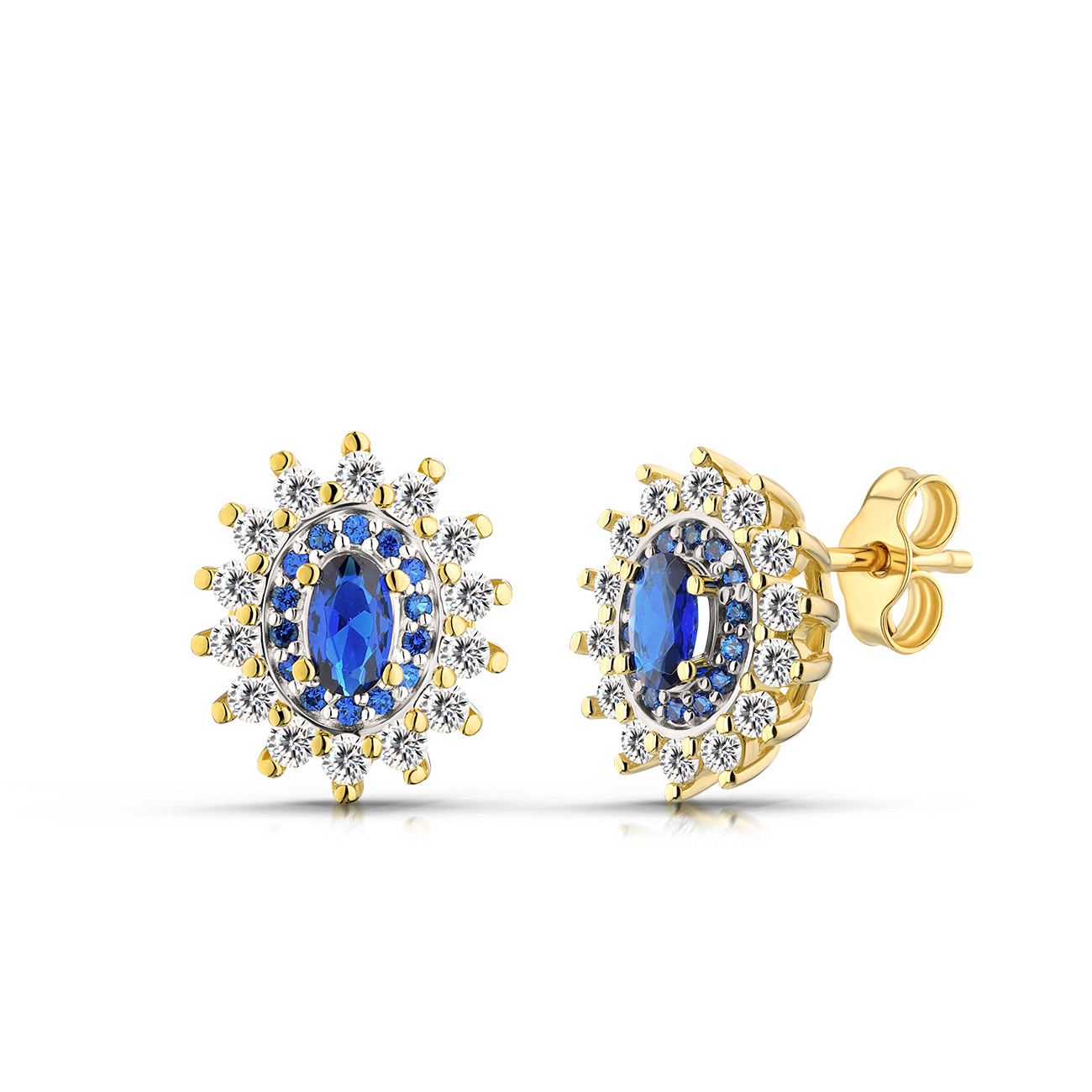 Wyjątkowe kolczyki ze złota o uniwersalnym charakterze. Kamienie szlachetne lub syntetyczne nadają im elegancji i subtelnego blasku. Biżuteria doskonale sprawdzi się jako prezent na każdą okazję.