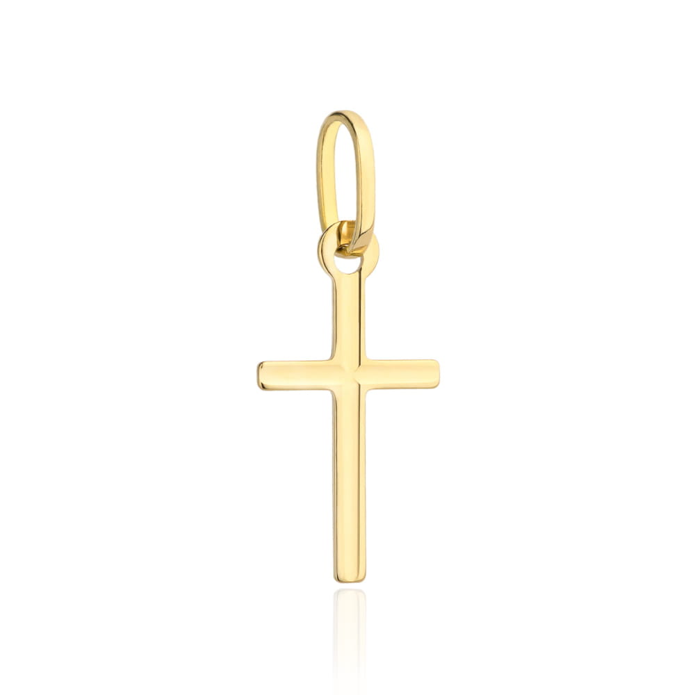 Precyzyjnie wykonany złoty krzyżyk próby 585. Pamiątka chrztu, pierwszej komunii, bierzmowania lub ważnego jubileuszu.
