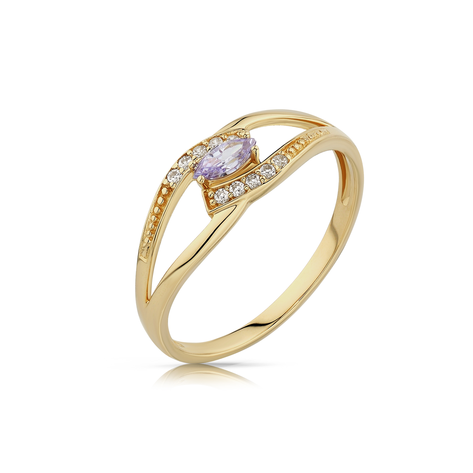 Stylowy pierścionek będący doskonałym wyborem dla osób ceniących jakość i estetykę. Subtelny połysk kamieni pięknie współgra z kolorem złota.