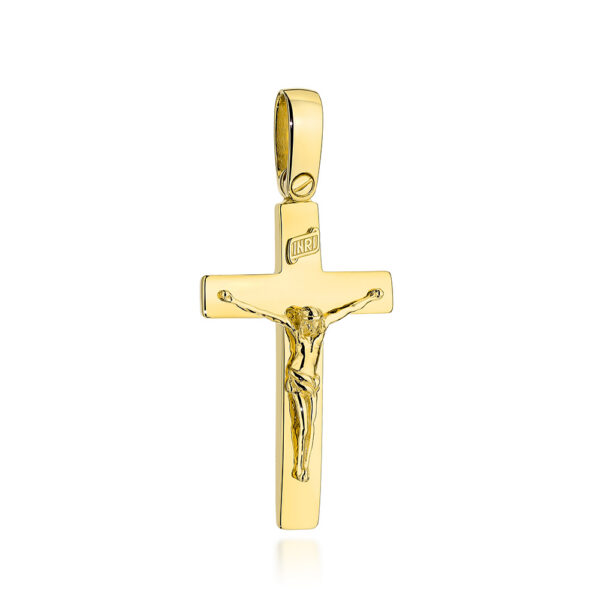 Krzyżyk złoty żłobiony z ozdobnymi ramionami