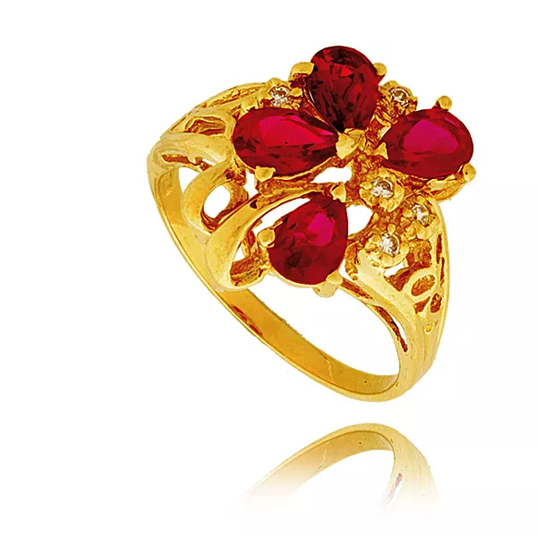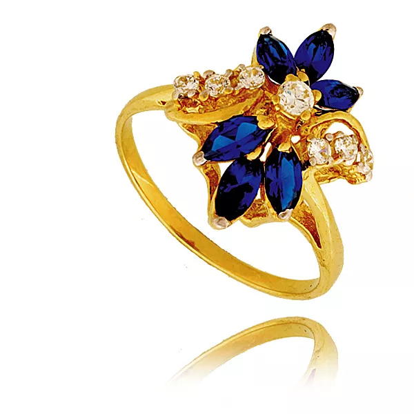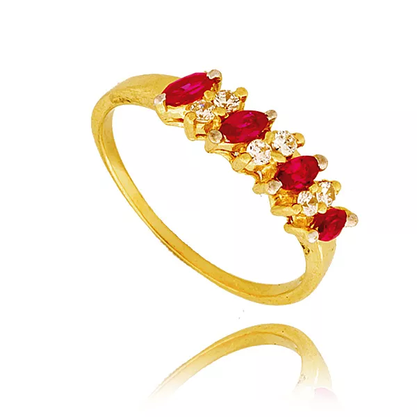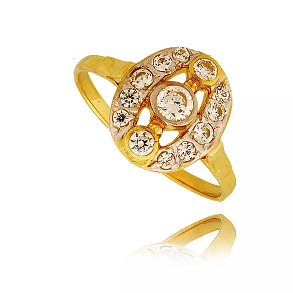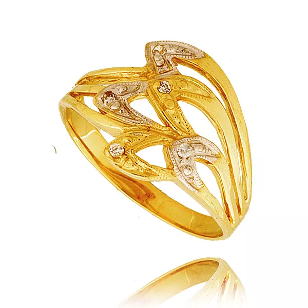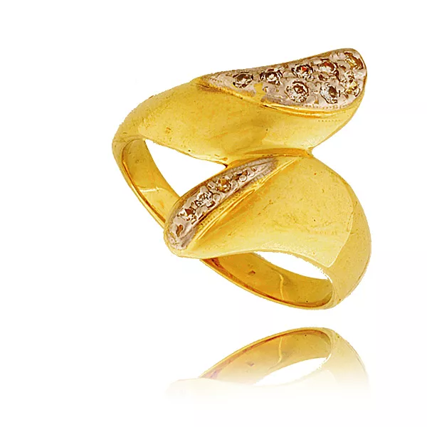 Złoty pierścionek podkreślający subtelny blask kamieni.
