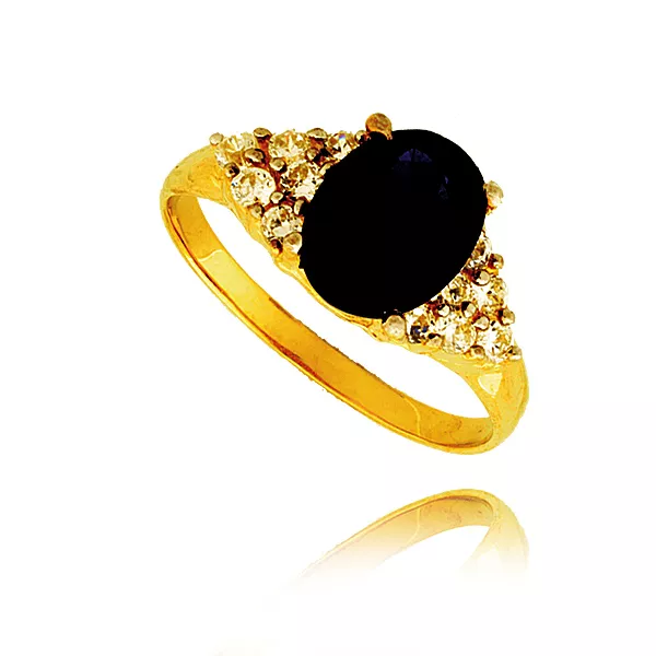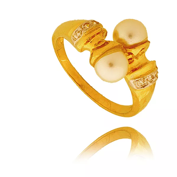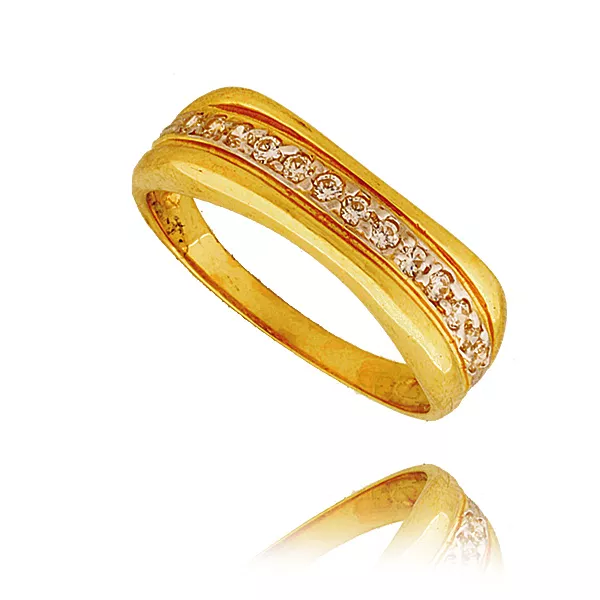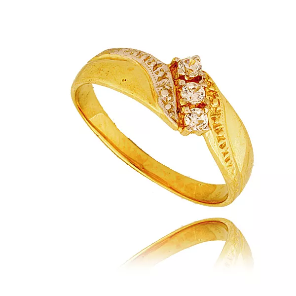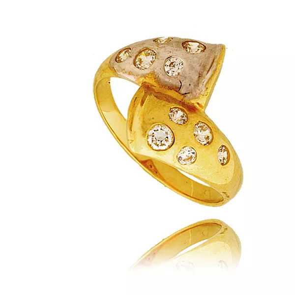 Złoty pierścionek podkreślający subtelny blask kamieni.
