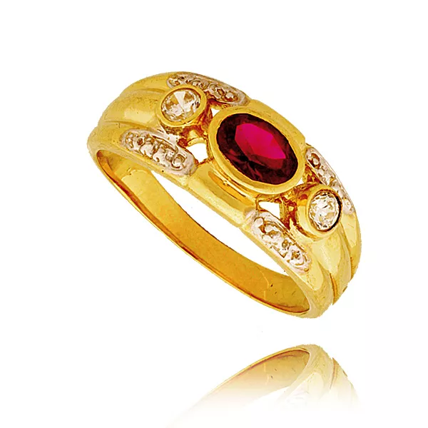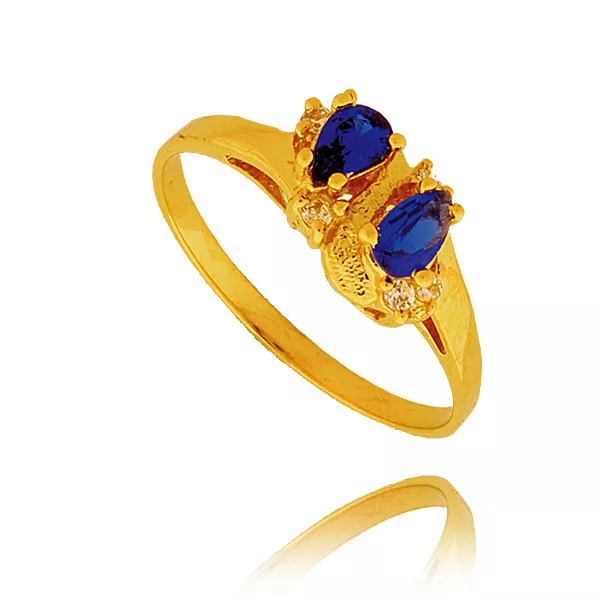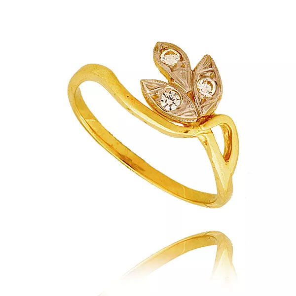 Złoty pierścionek podkreślający subtelny blask kamieni.