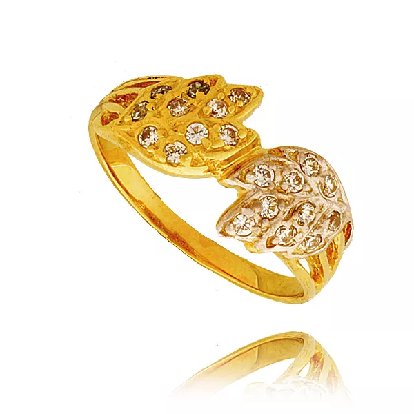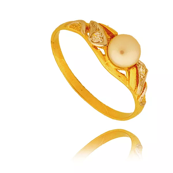 Złoty pierścionek podkreślający subtelny blask kamieni.