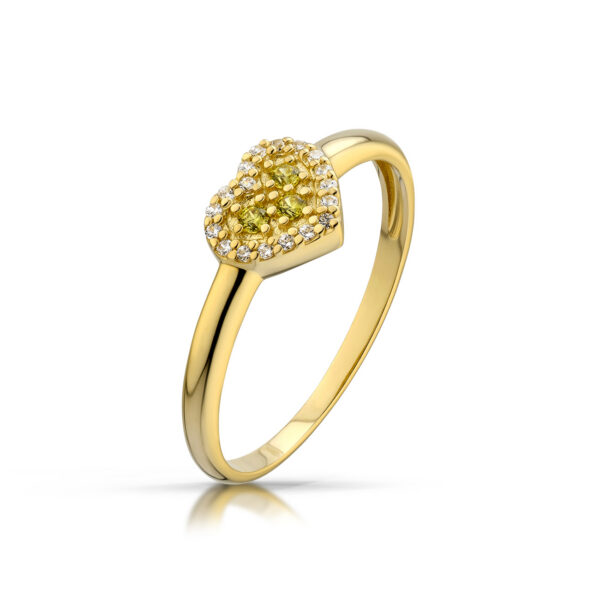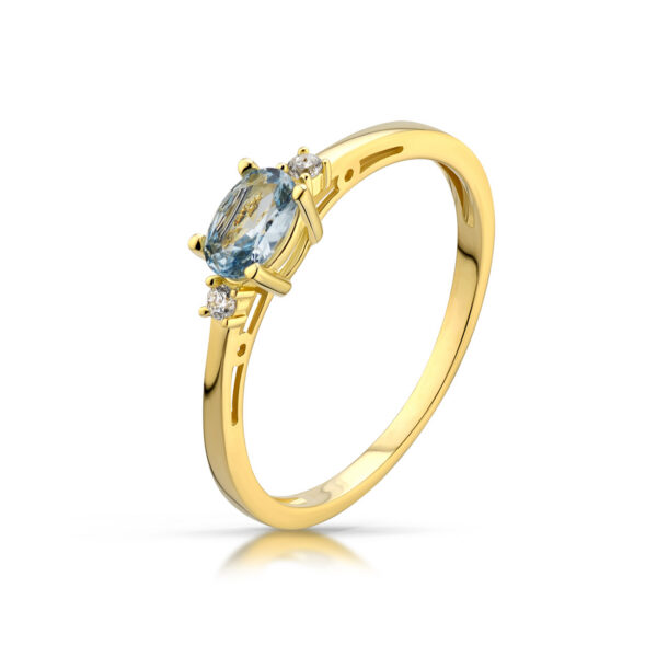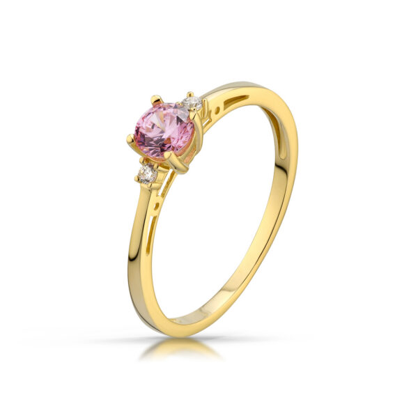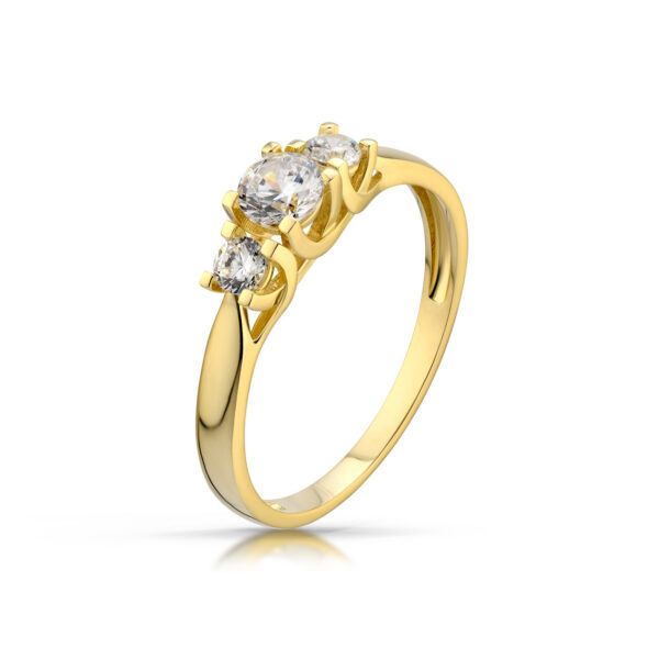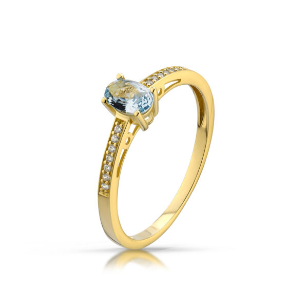 Złoty pierścionek podkreślający subtelny blask kamieni.