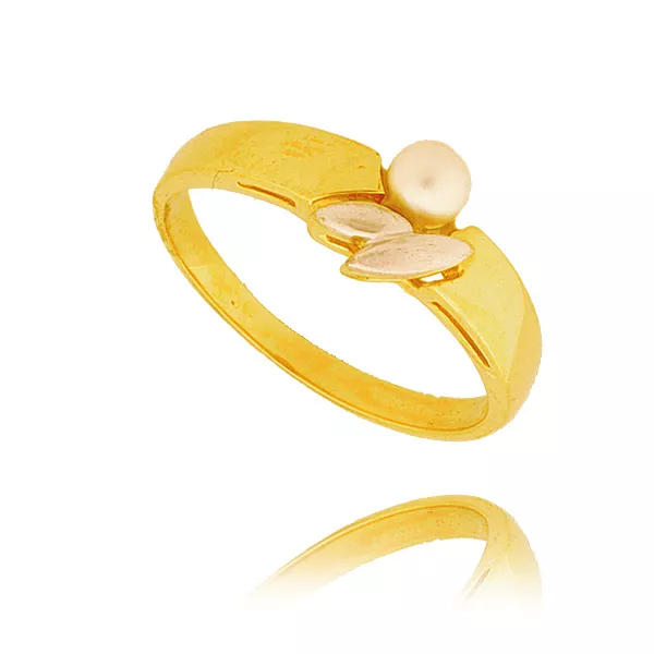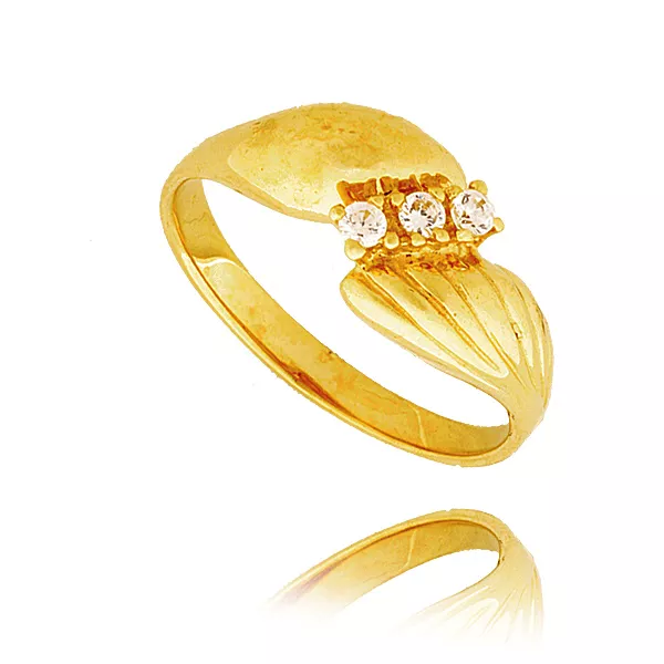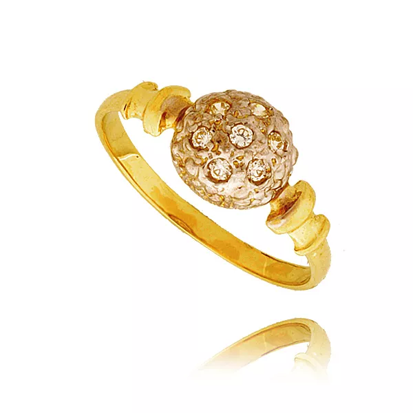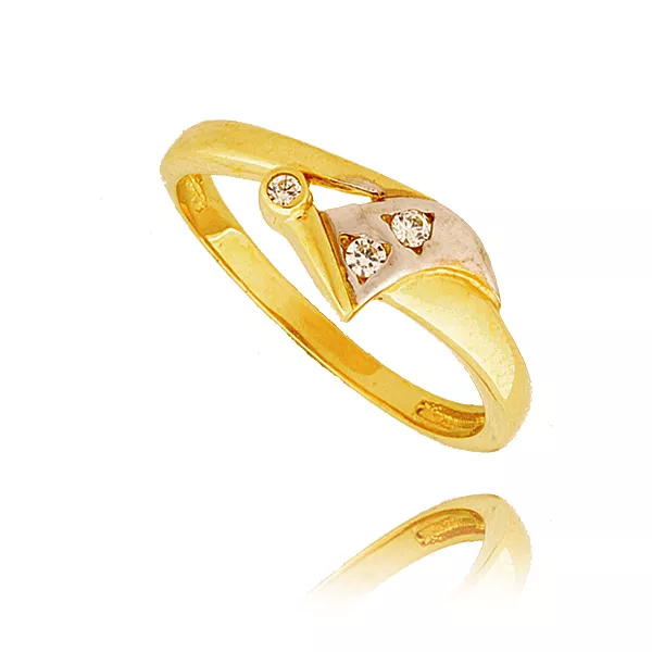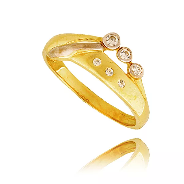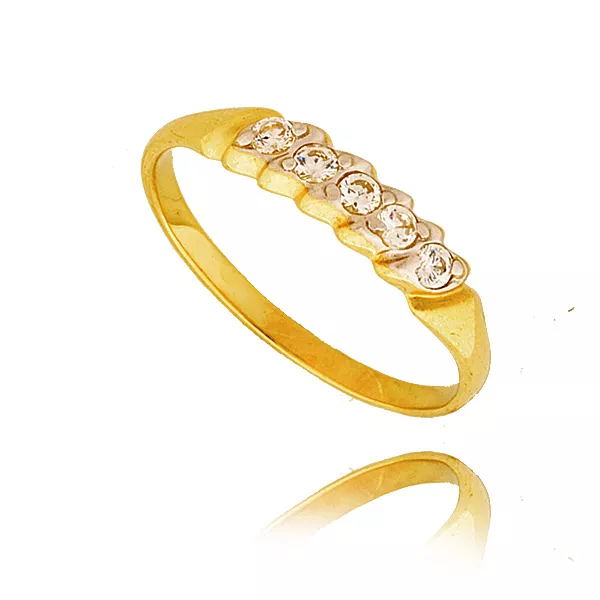 Złoty pierścionek podkreślający subtelny blask kamieni.