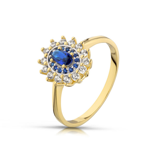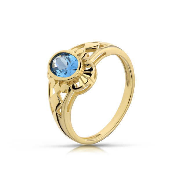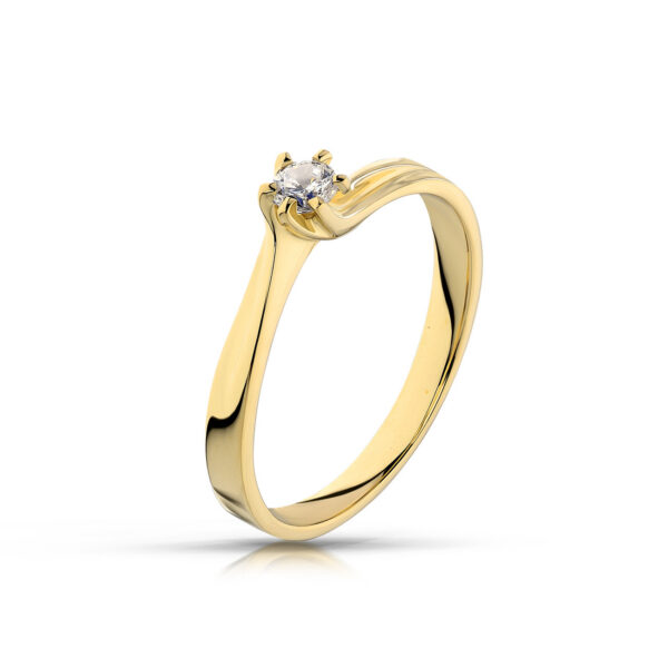 Złoty pierścionek podkreślający subtelny blask kamieni.