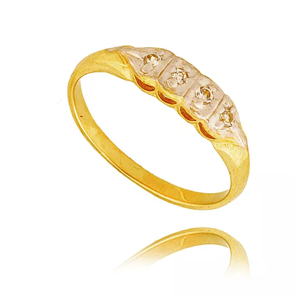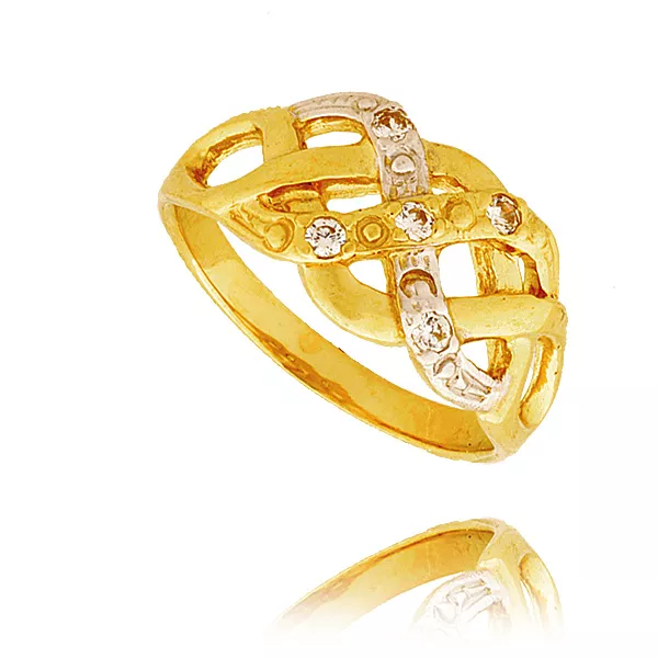Złoty pierścionek podkreślający subtelny blask kamieni.