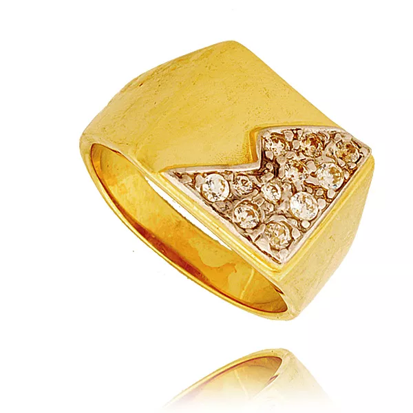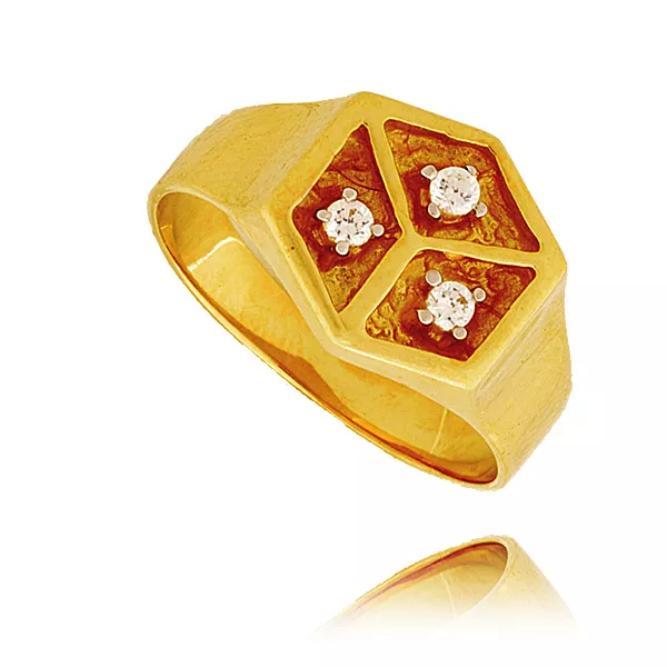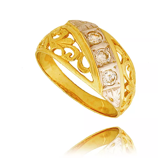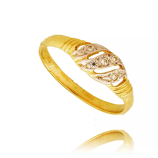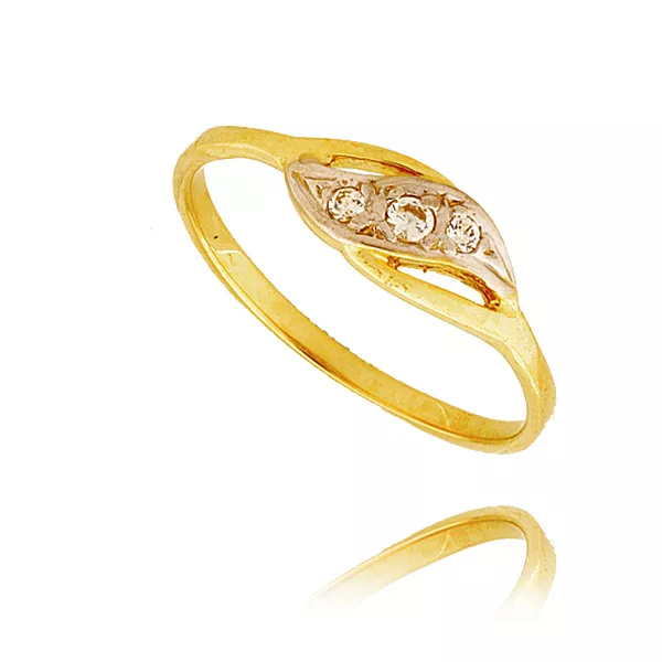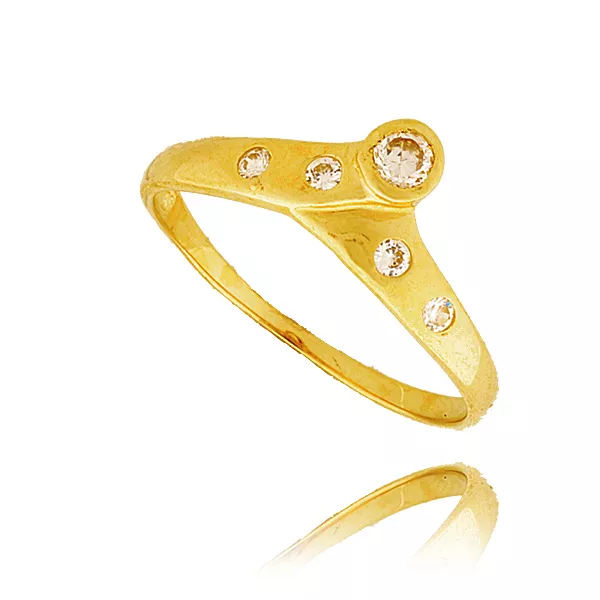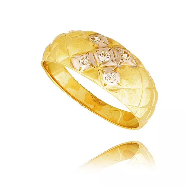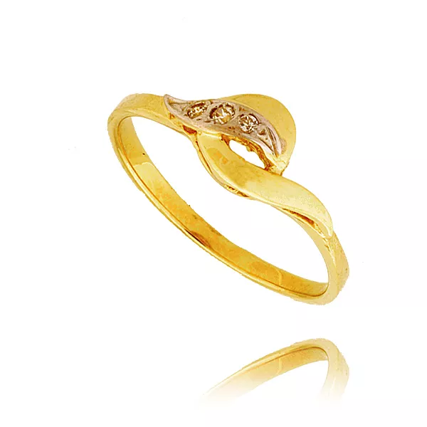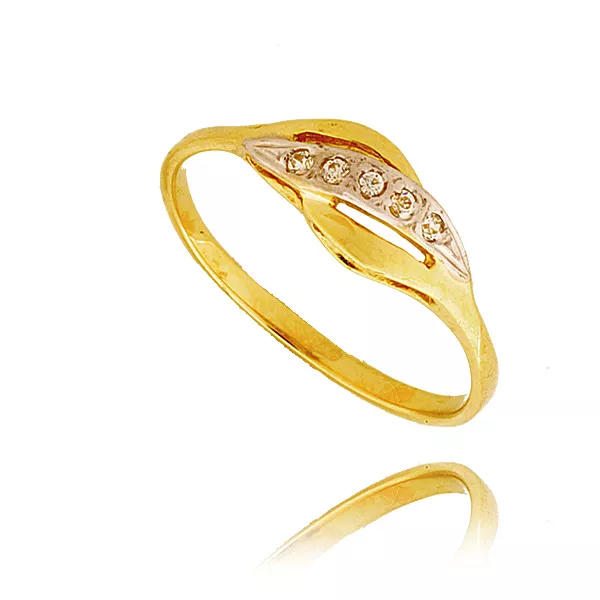 Złoty pierścionek podkreślający subtelny blask kamieni.