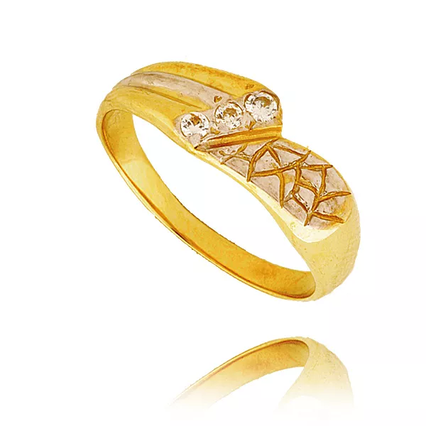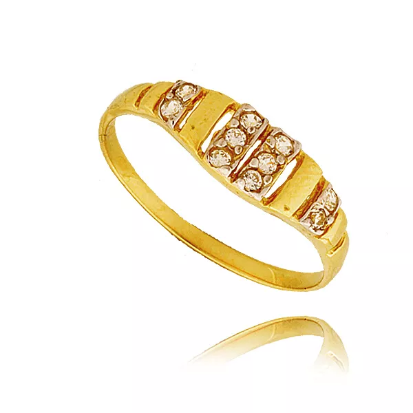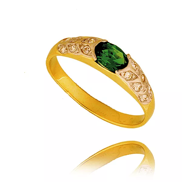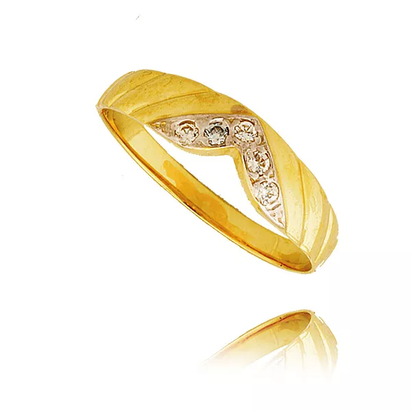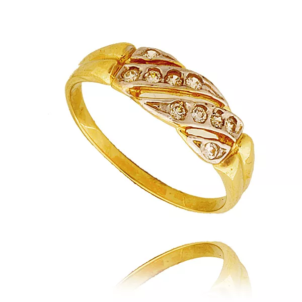 Złoty pierścionek podkreślający subtelny blask kamieni.