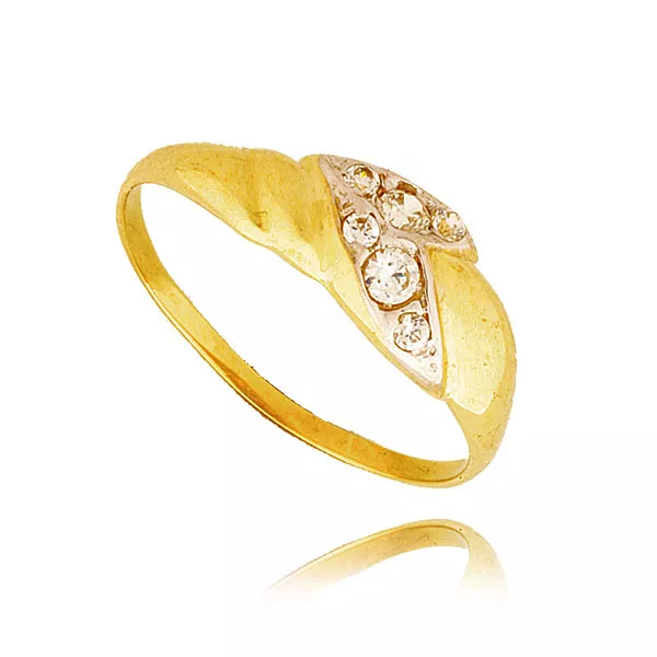 Złoty pierścionek podkreślający subtelny blask kamieni.