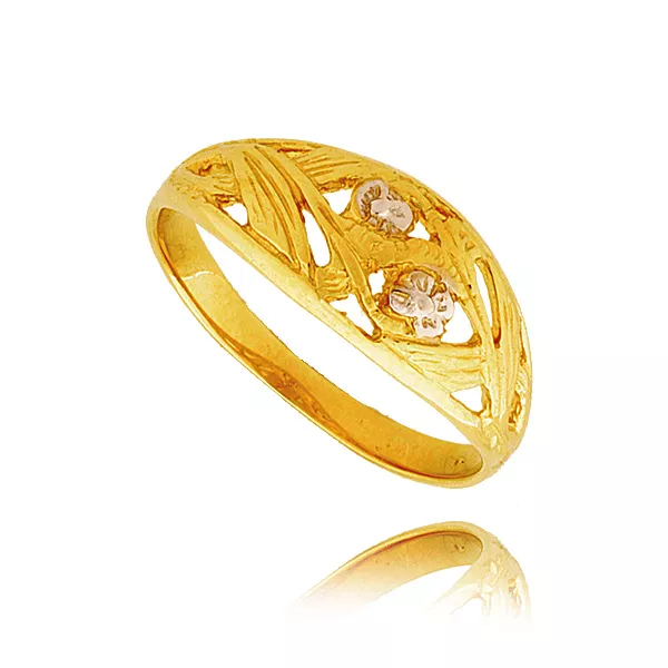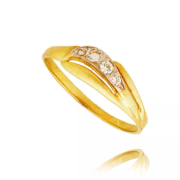 Złoty pierścionek podkreślający subtelny blask kamieni.