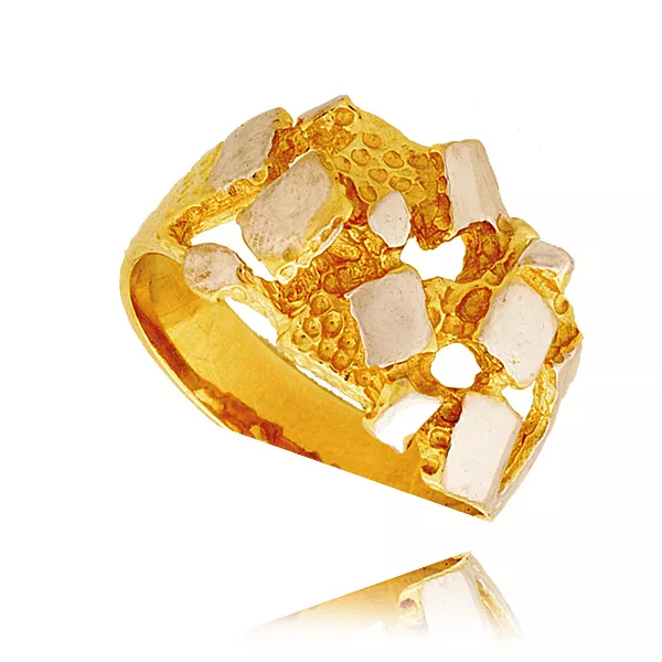 Złoty pierścionek podkreślający subtelny blask kamieni.
