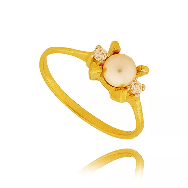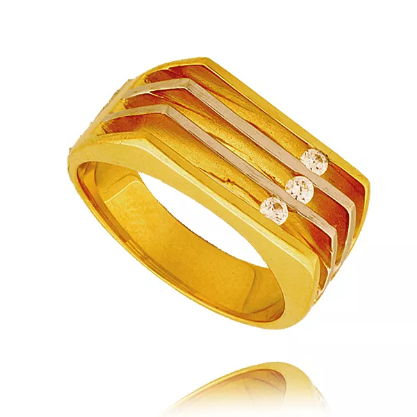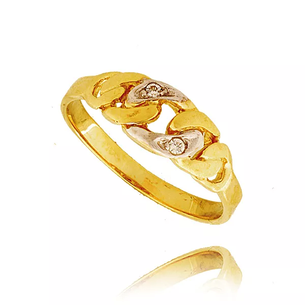 Złoty pierścionek podkreślający subtelny blask kamieni.
