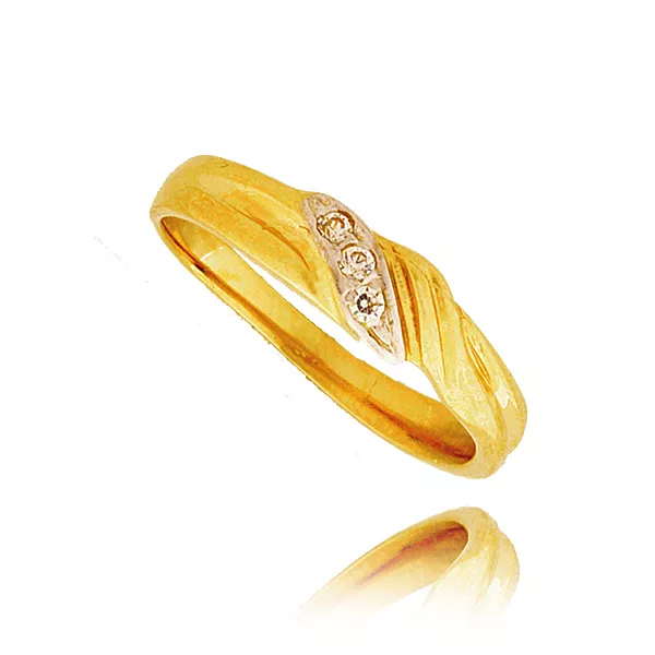 Złoty pierścionek podkreślający subtelny blask kamieni.