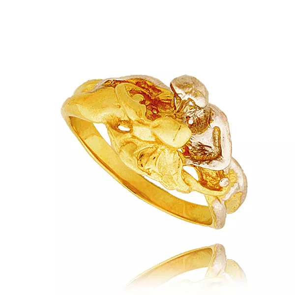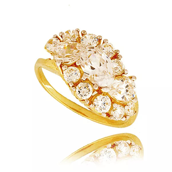 Złoty pierścionek podkreślający subtelny blask kamieni.