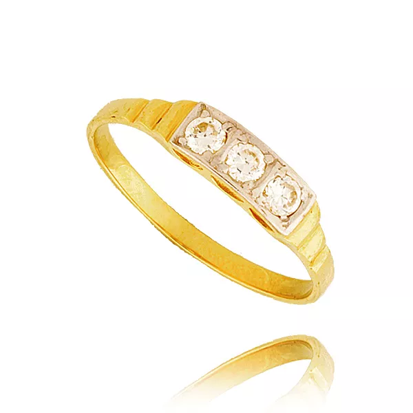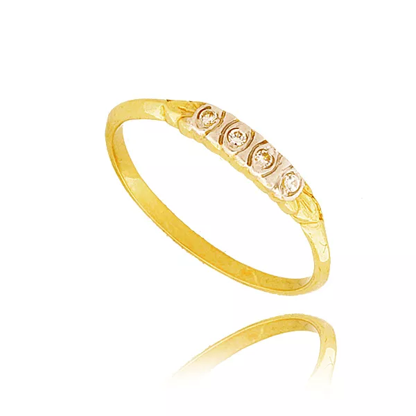 Złoty pierścionek podkreślający subtelny blask kamieni.