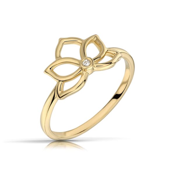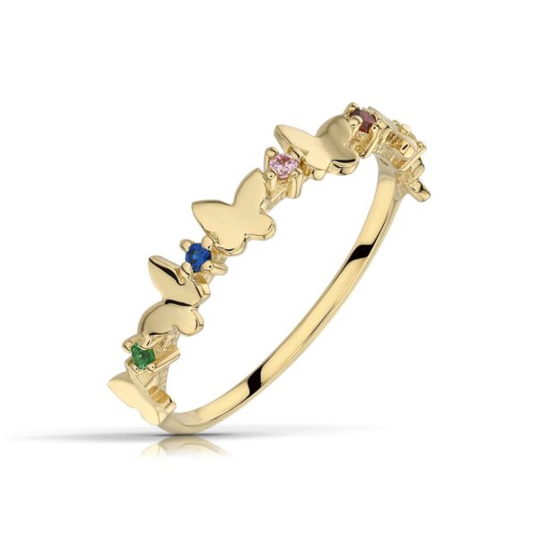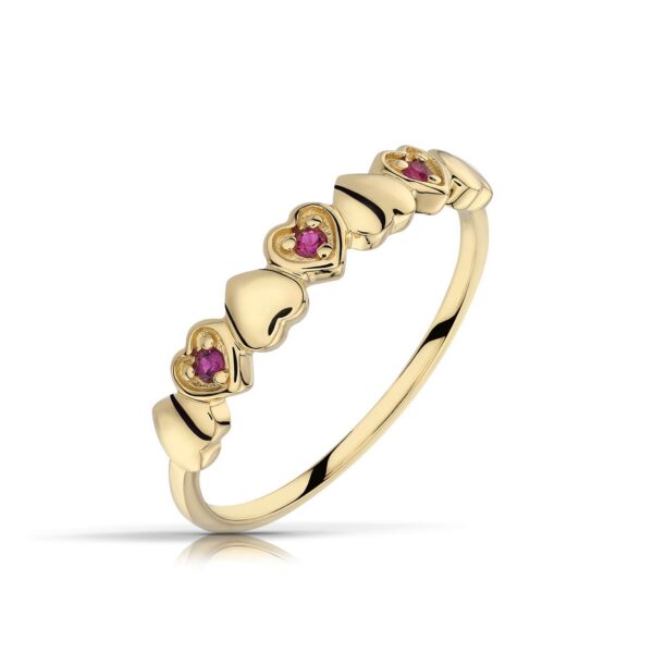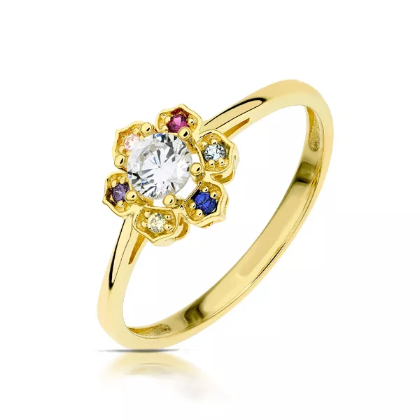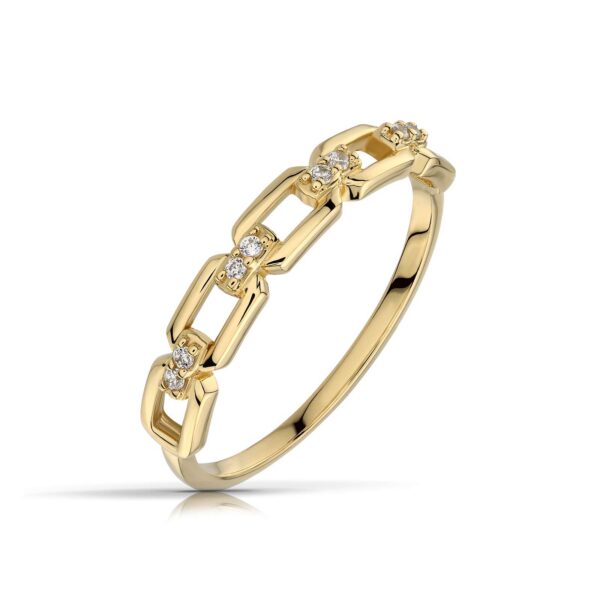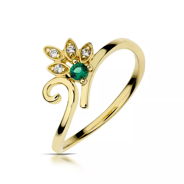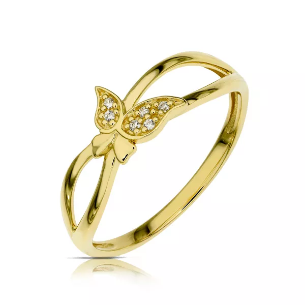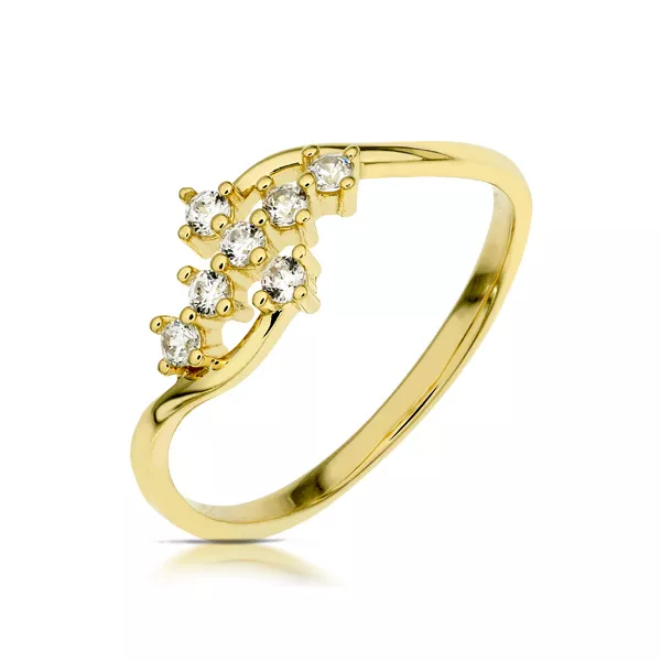 Złoty pierścionek podkreślający subtelny blask kamieni.