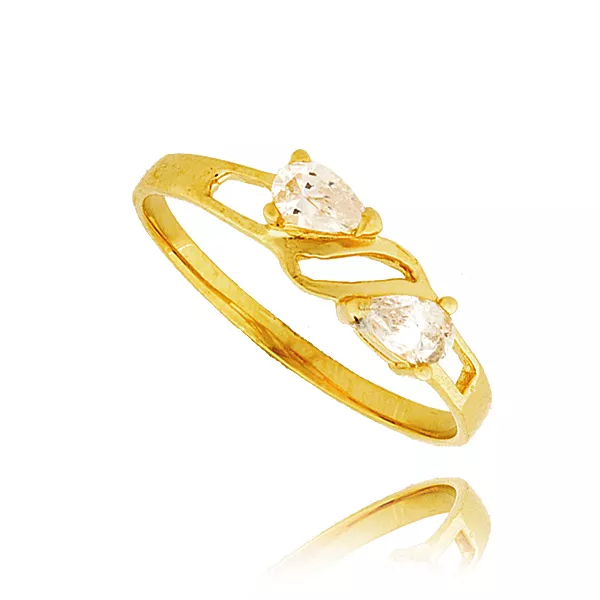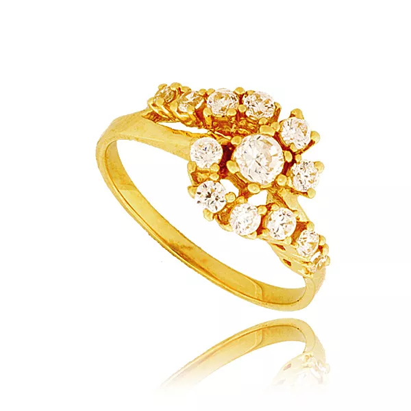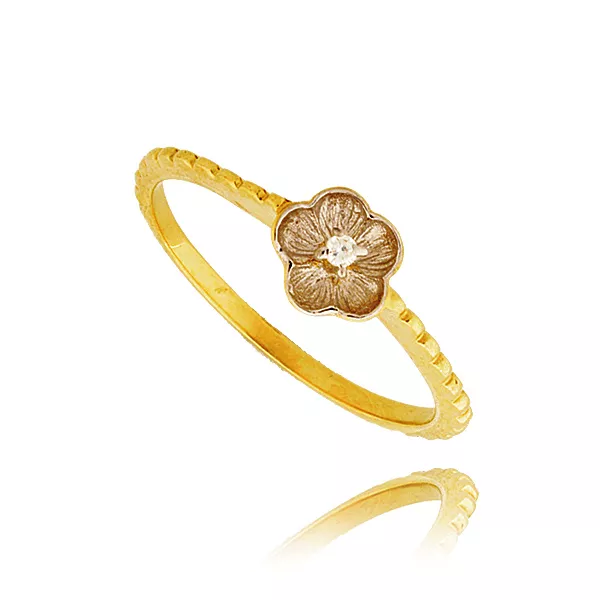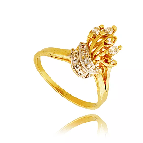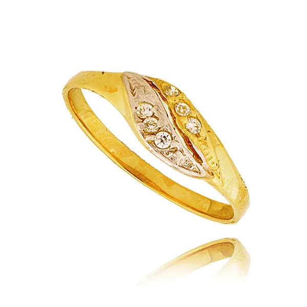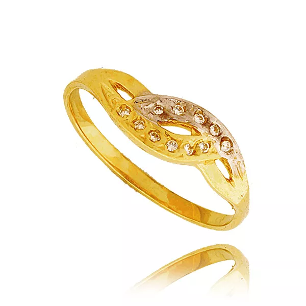 Złoty pierścionek podkreślający subtelny blask kamieni.