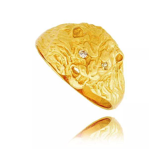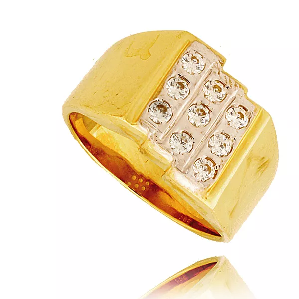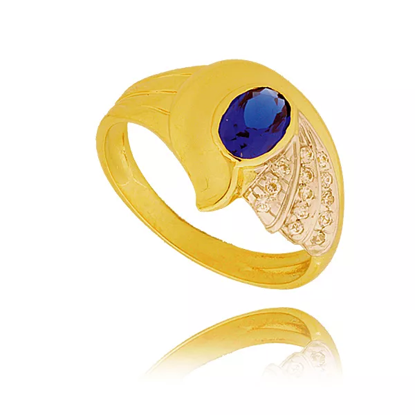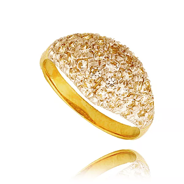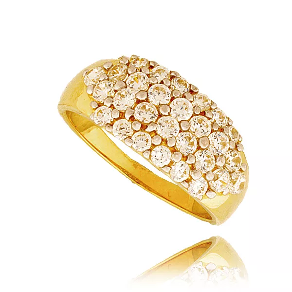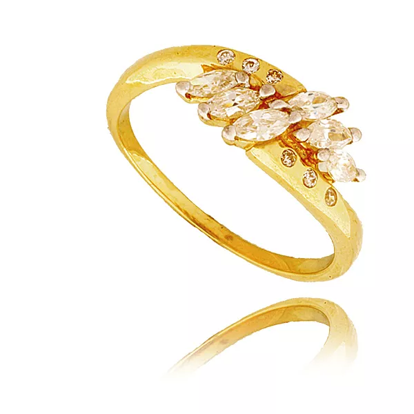 Złoty pierścionek podkreślający subtelny blask kamieni.