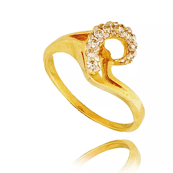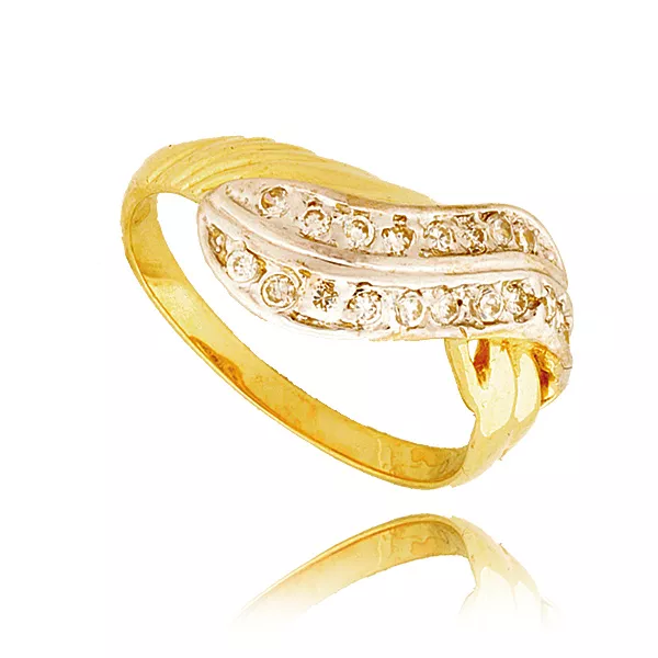 Złoty pierścionek podkreślający subtelny blask kamieni.