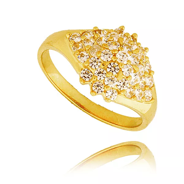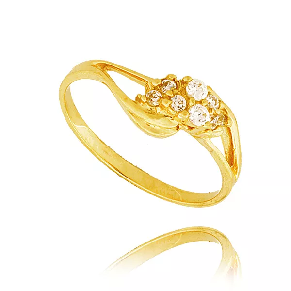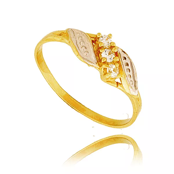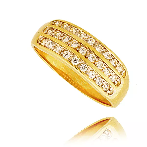 Złoty pierścionek podkreślający subtelny blask kamieni.