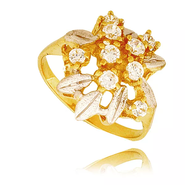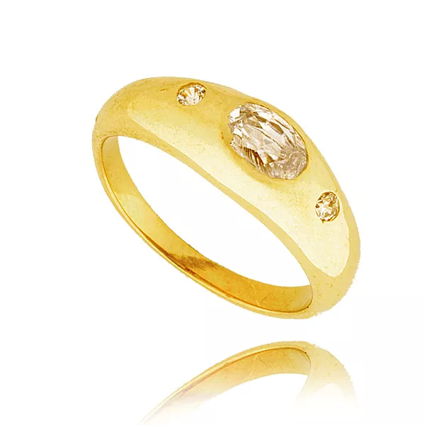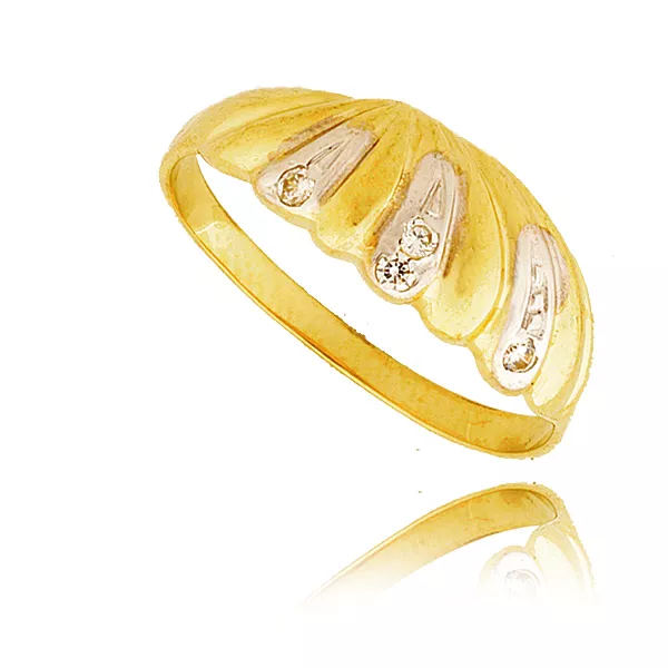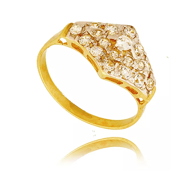 Złoty pierścionek podkreślający subtelny blask kamieni.