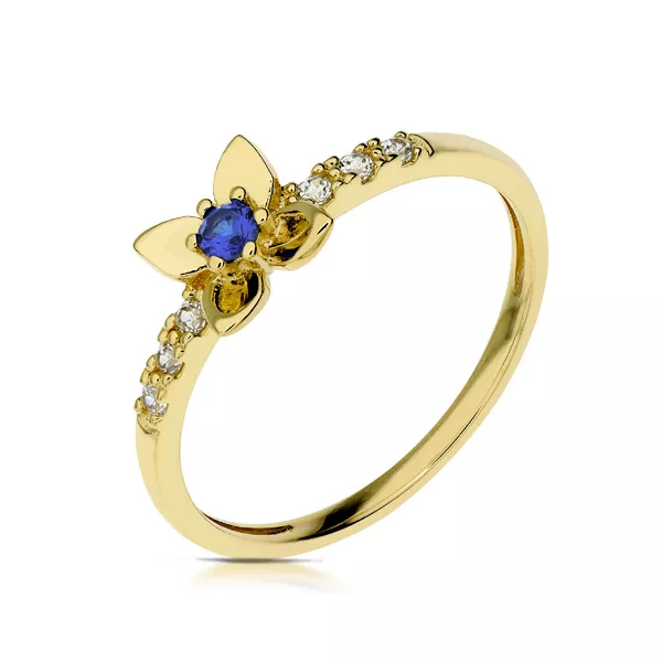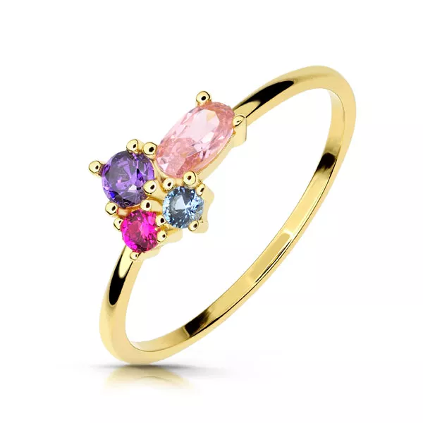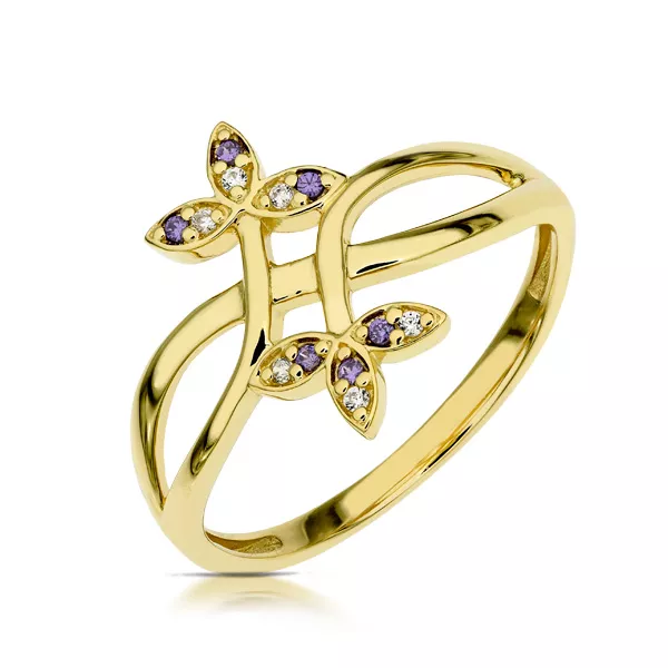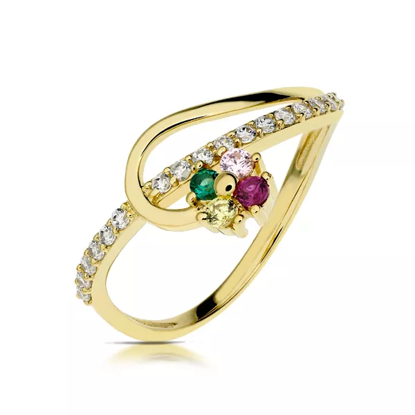 Złoty pierścionek podkreślający subtelny blask kamieni.