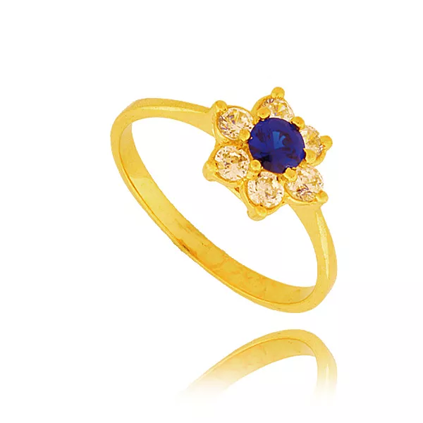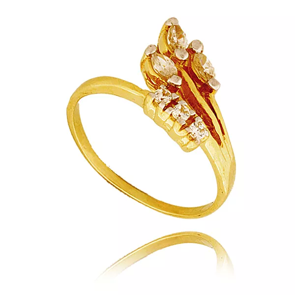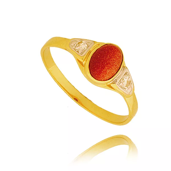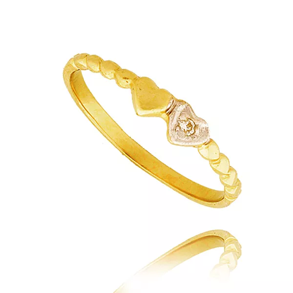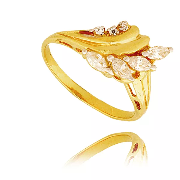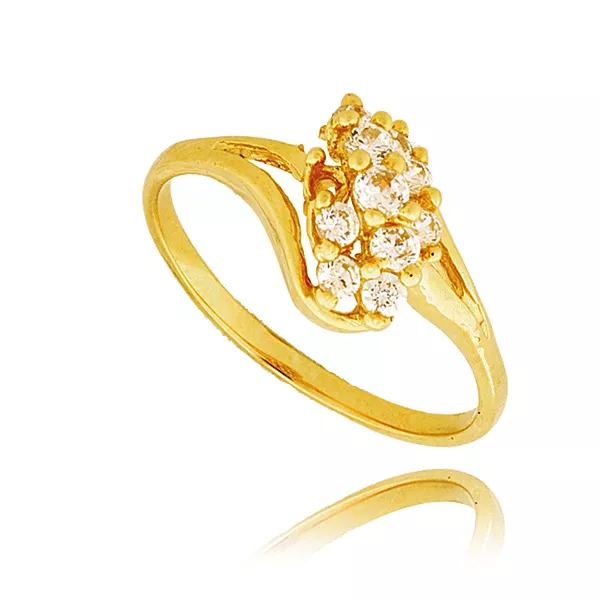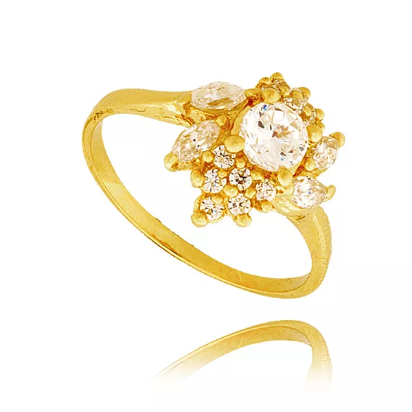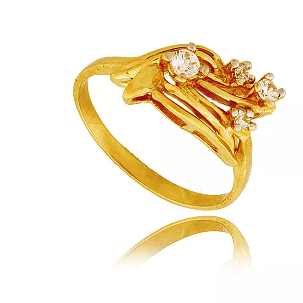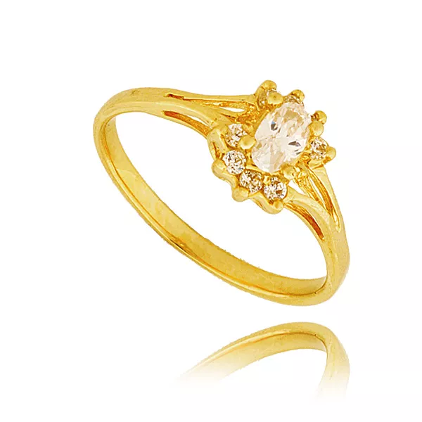 Złoty pierścionek podkreślający subtelny blask kamieni.