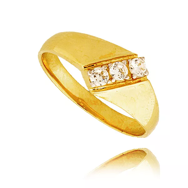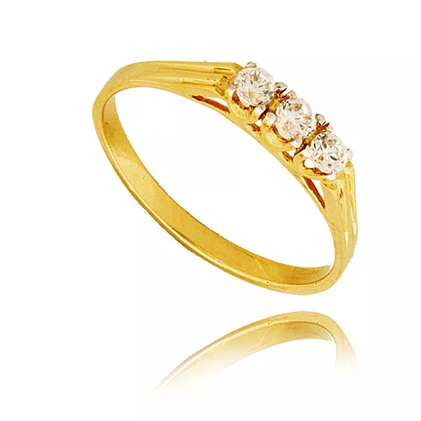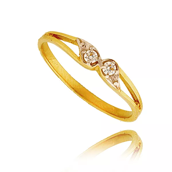 Złoty pierścionek podkreślający subtelny blask kamieni.