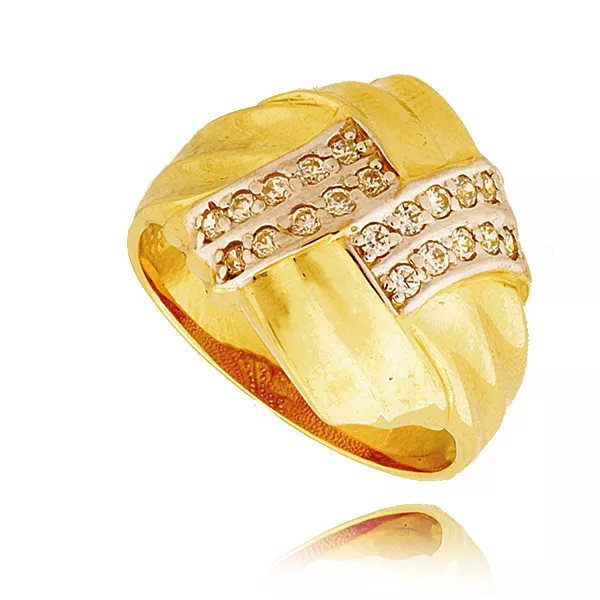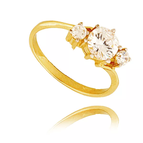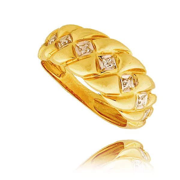 Złoty pierścionek podkreślający subtelny blask kamieni.