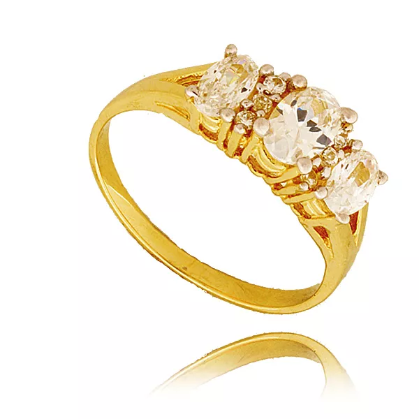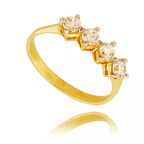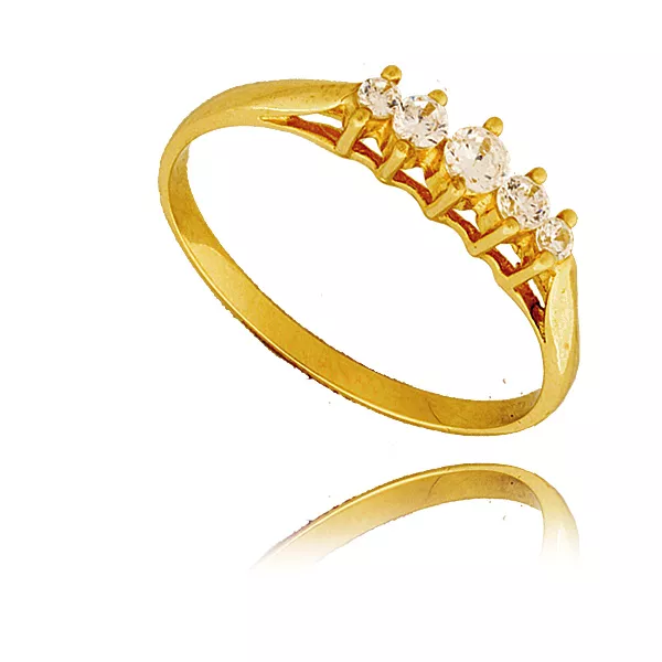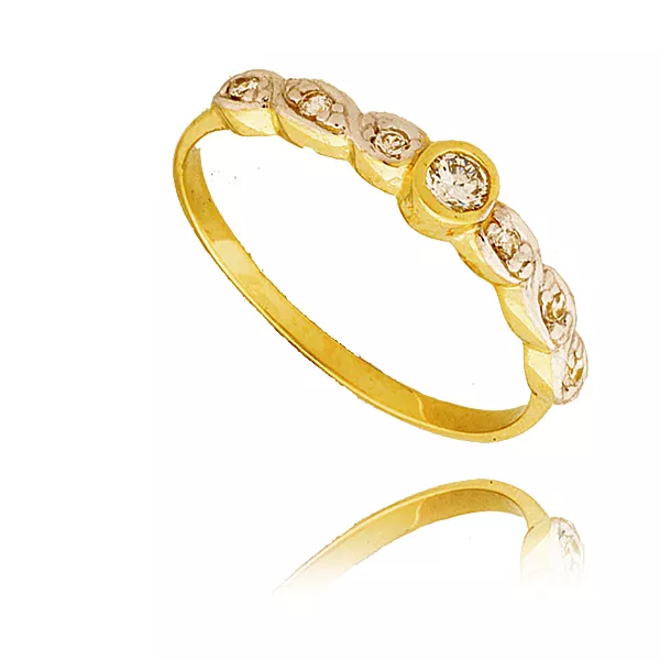 Złoty pierścionek podkreślający subtelny blask kamieni.