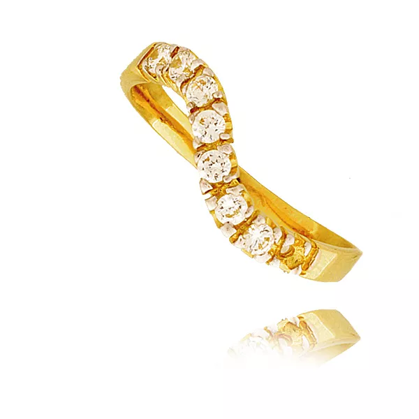 Złoty pierścionek podkreślający subtelny blask kamieni.