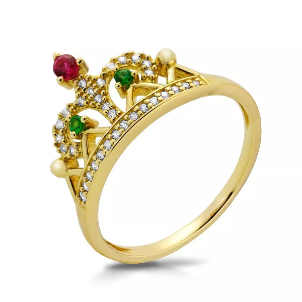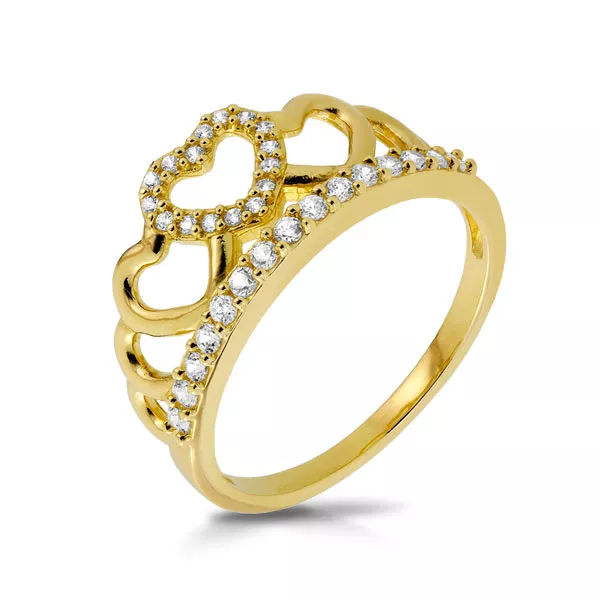 Złoty pierścionek podkreślający subtelny blask kamieni.