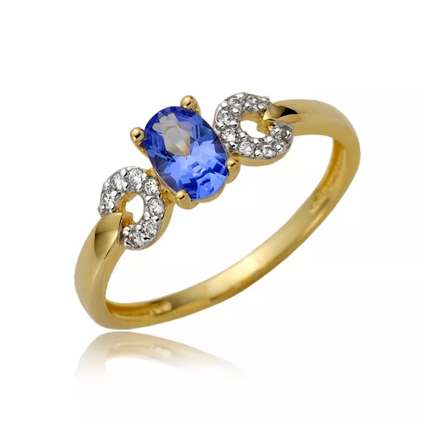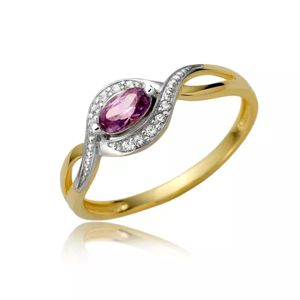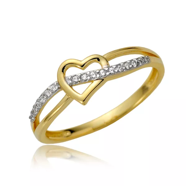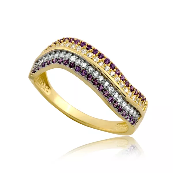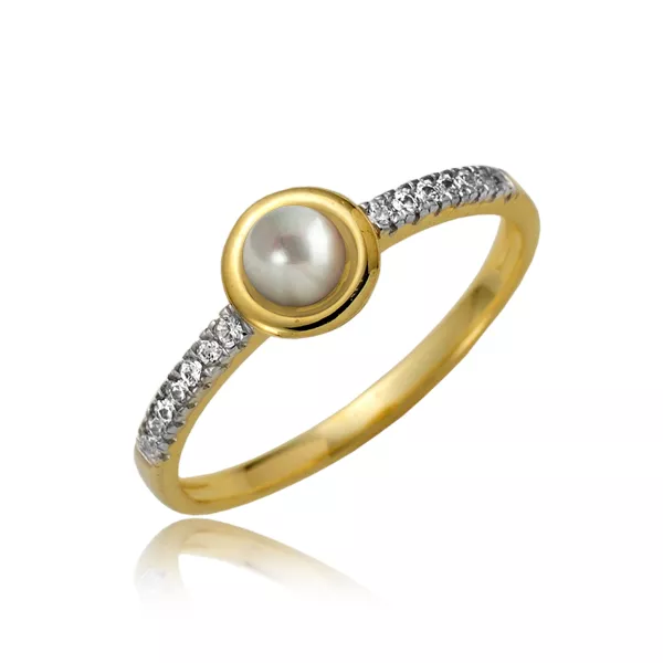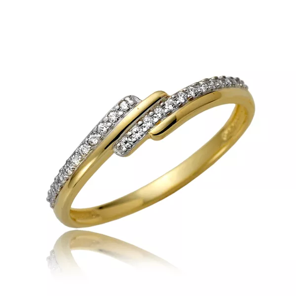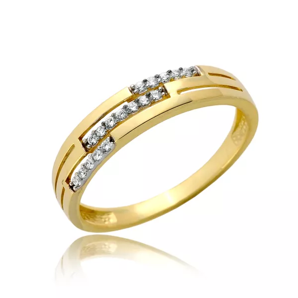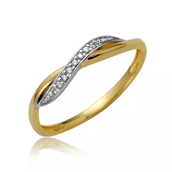 Złoty pierścionek podkreślający subtelny blask kamieni.