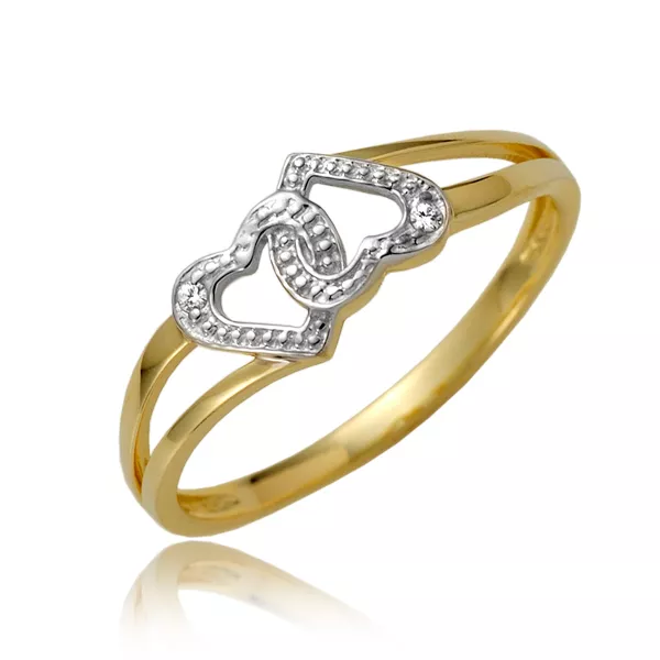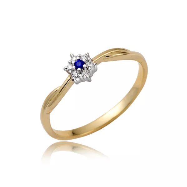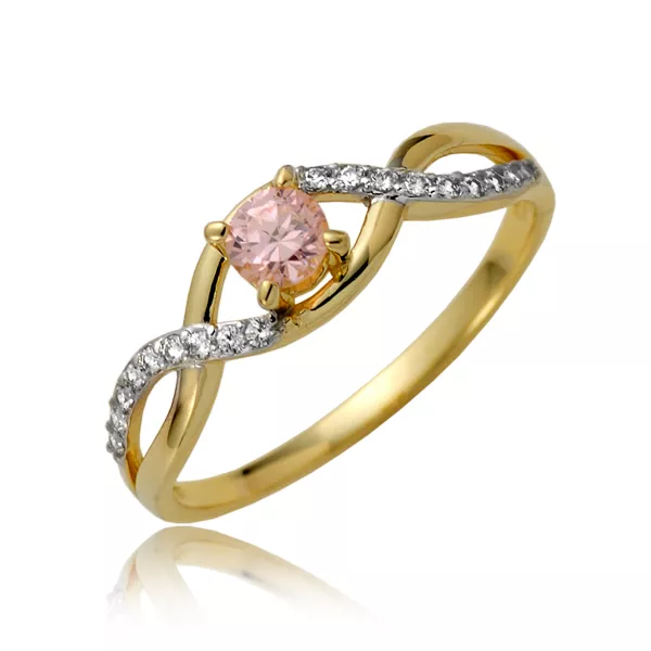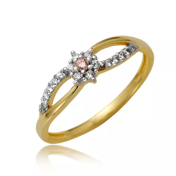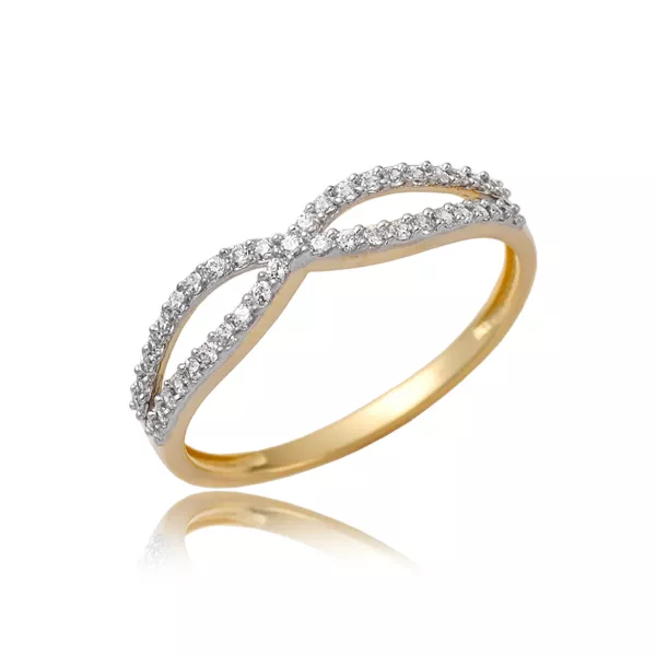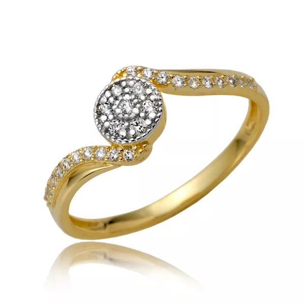 Złoty pierścionek podkreślający subtelny blask kamieni.