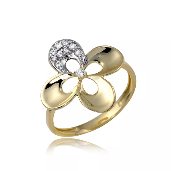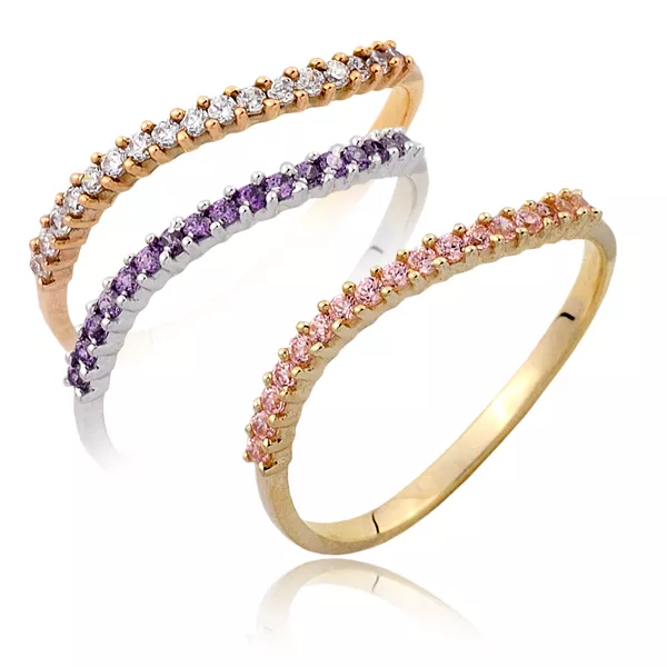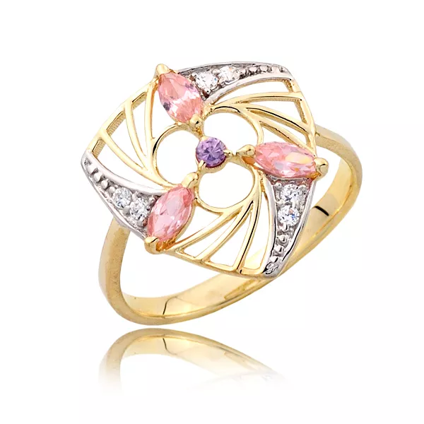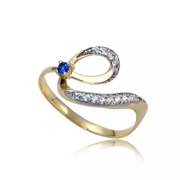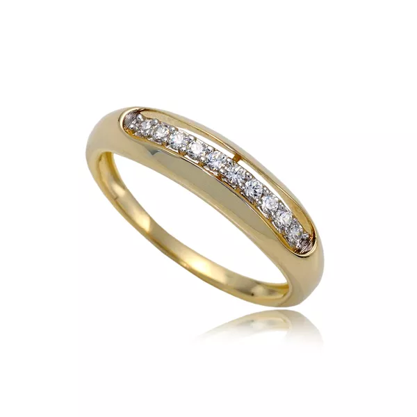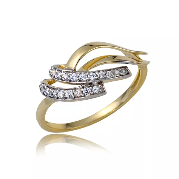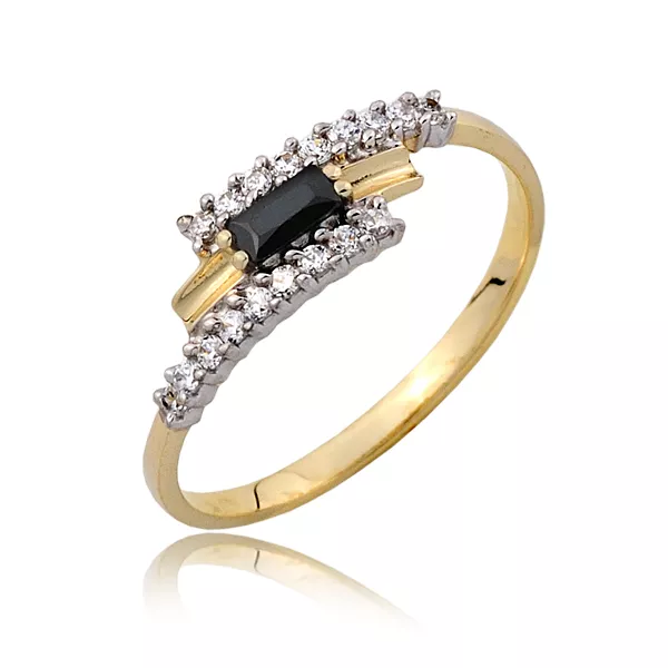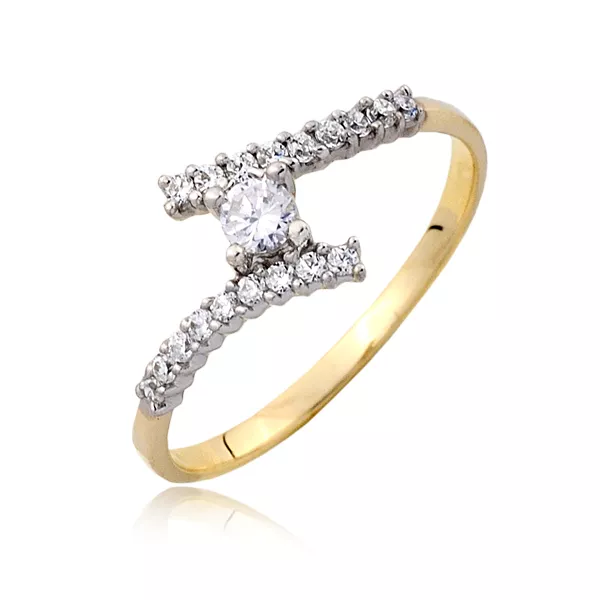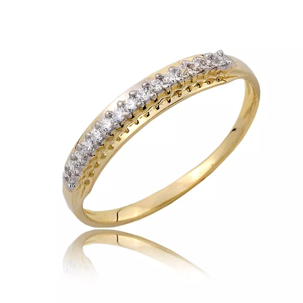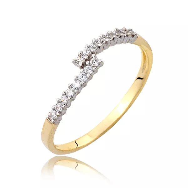 Złoty pierścionek podkreślający subtelny blask kamieni.