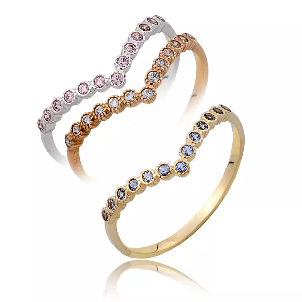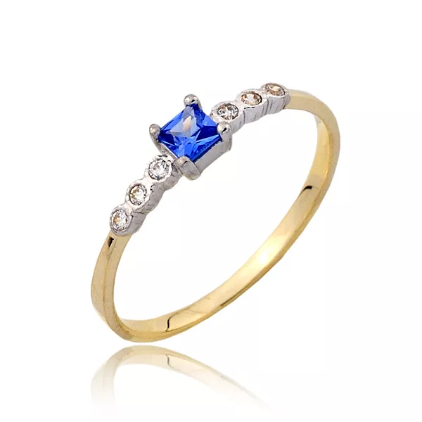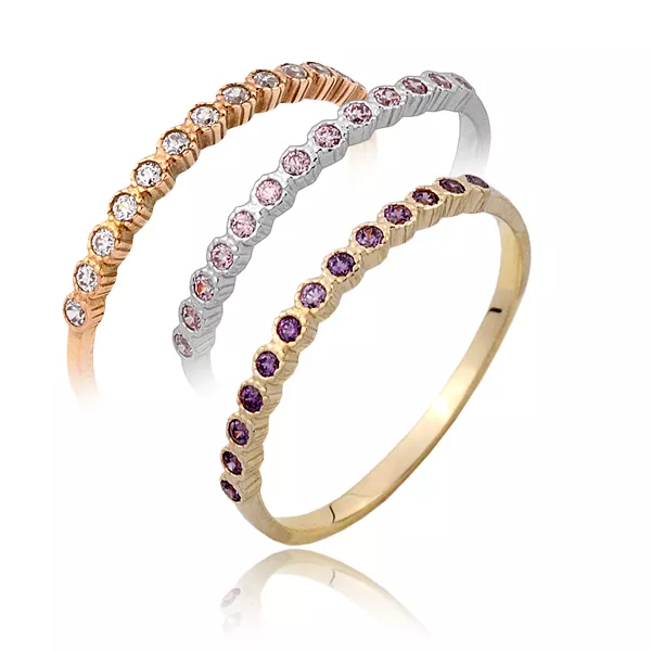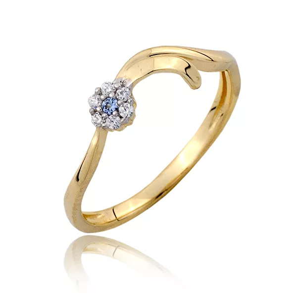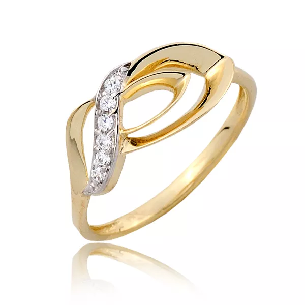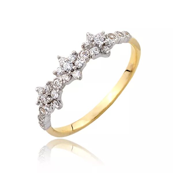Złoty pierścionek podkreślający subtelny blask kamieni.