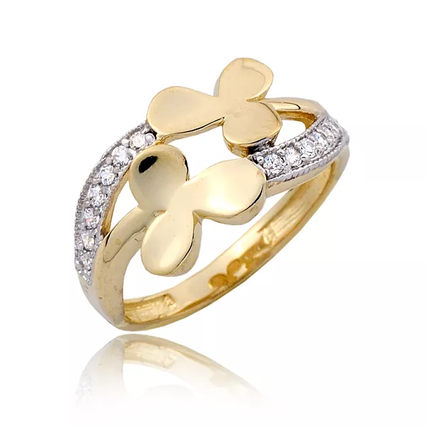 Złoty pierścionek podkreślający subtelny blask kamieni.