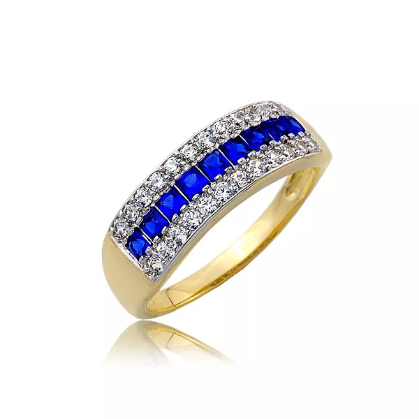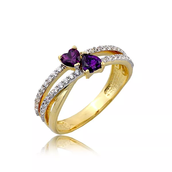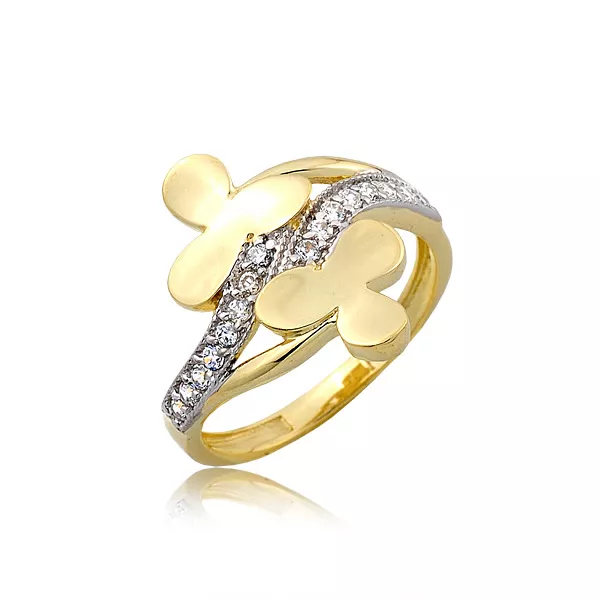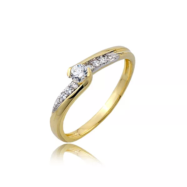 Złoty pierścionek podkreślający subtelny blask kamieni.