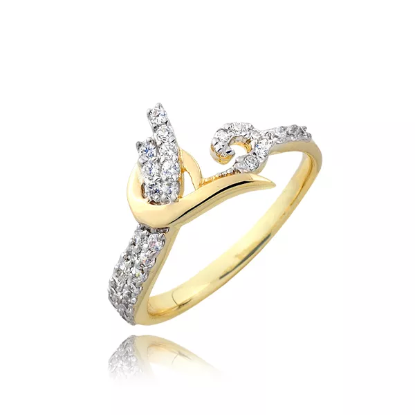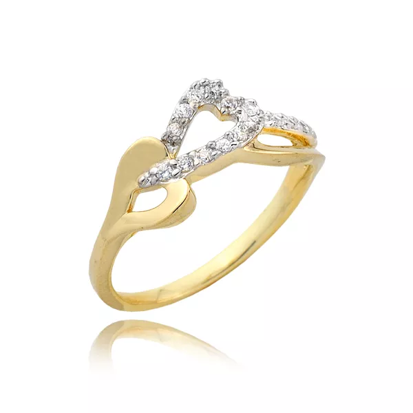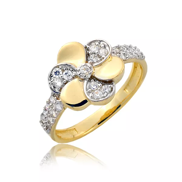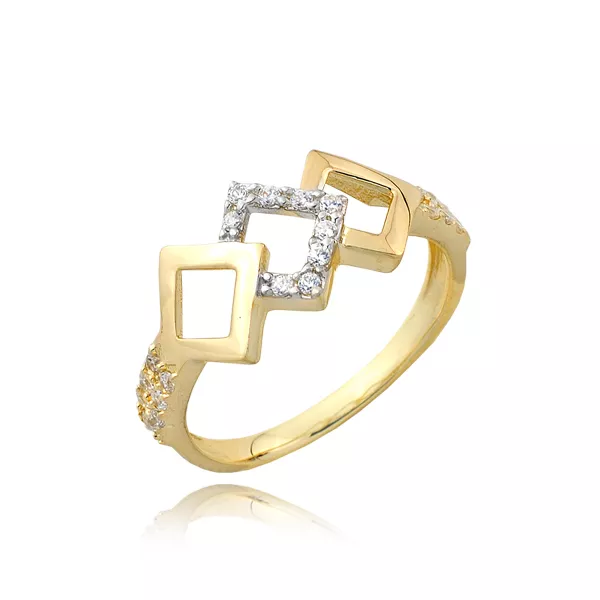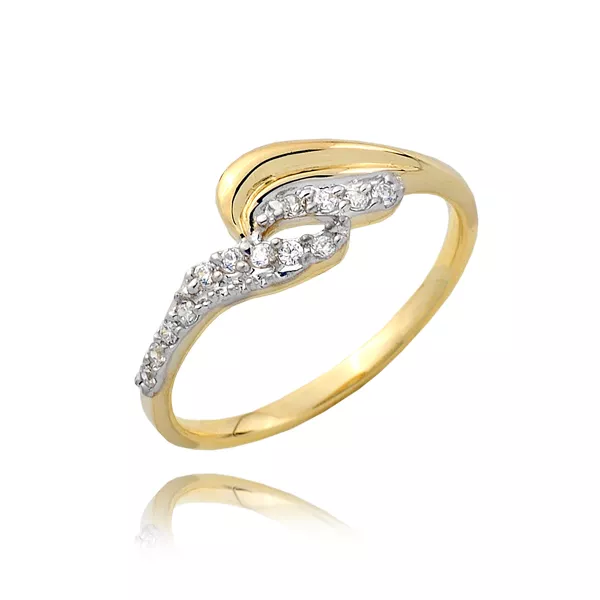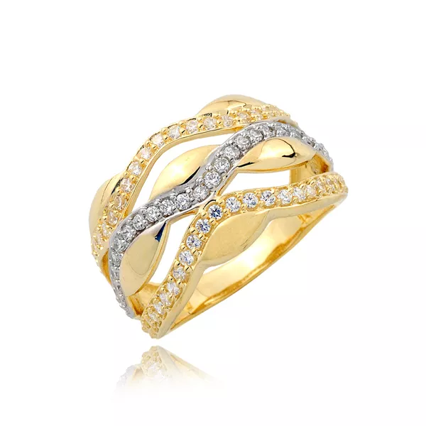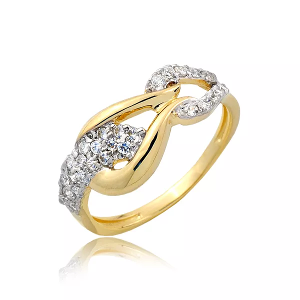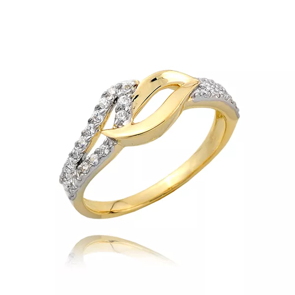 Złoty pierścionek podkreślający subtelny blask kamieni.
