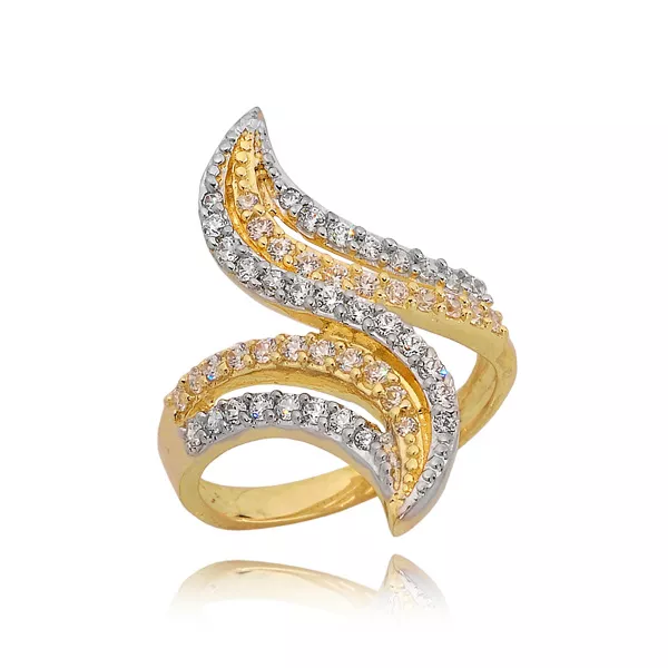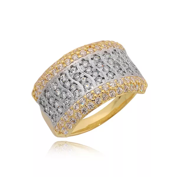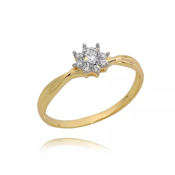Złoty pierścionek podkreślający subtelny blask kamieni.