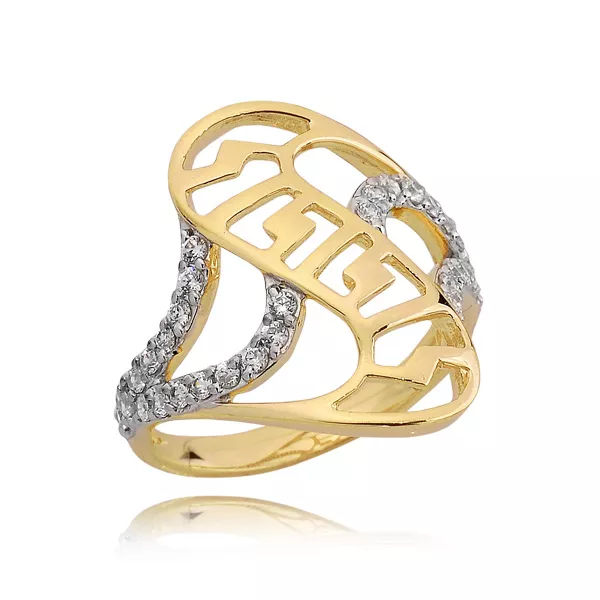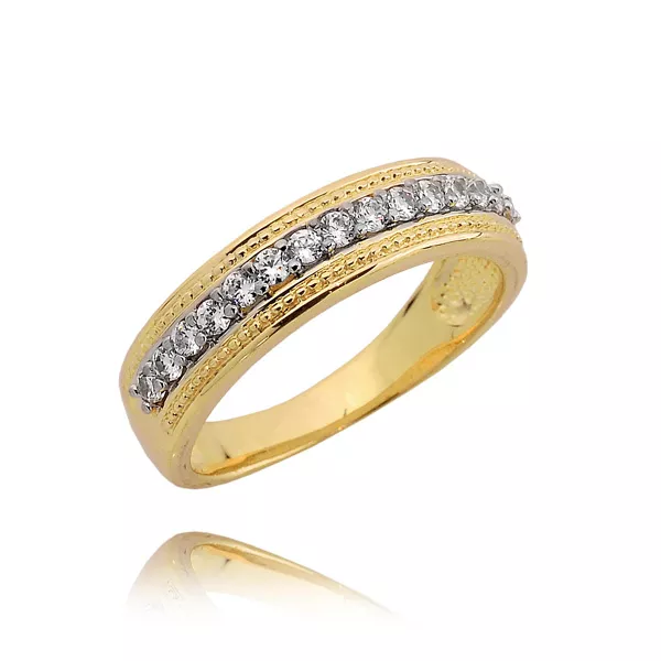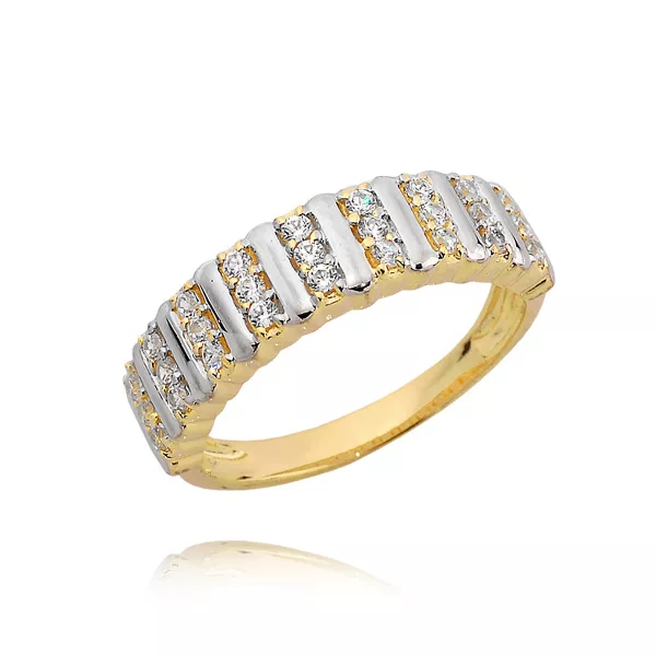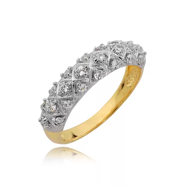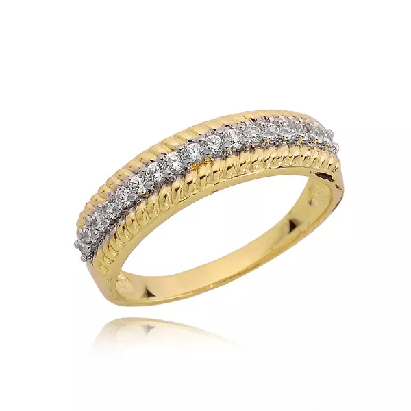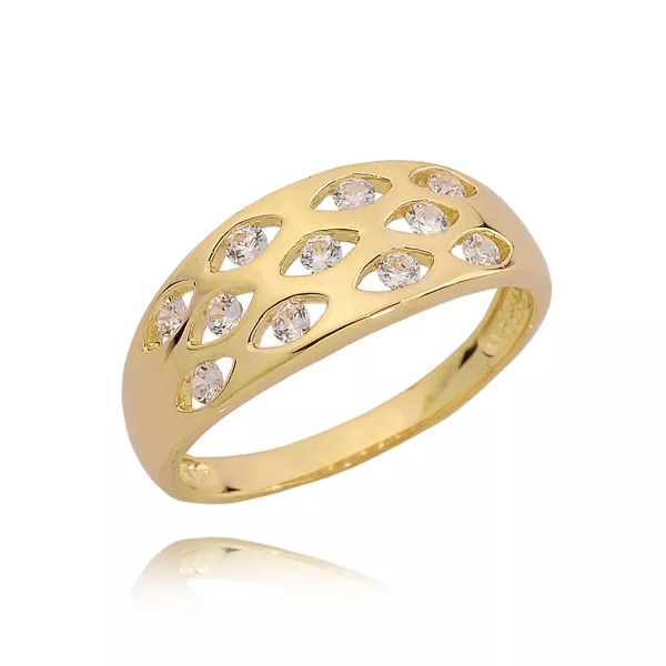 Złoty pierścionek podkreślający subtelny blask kamieni.