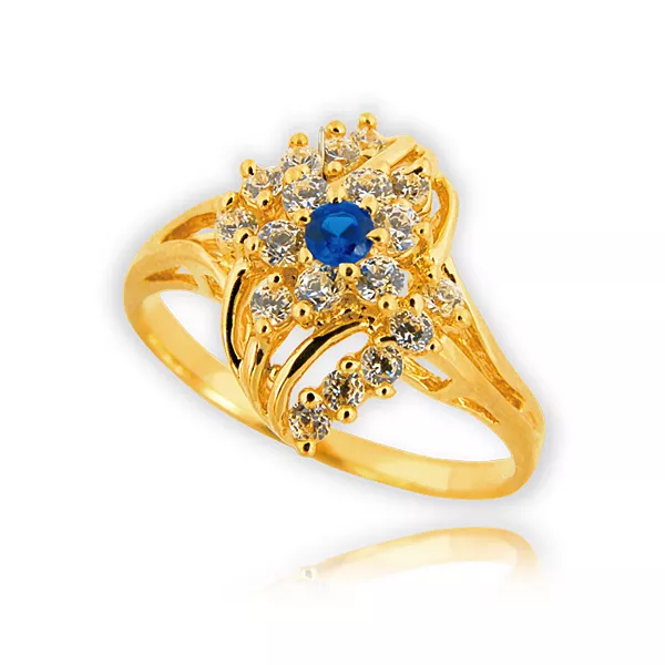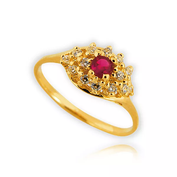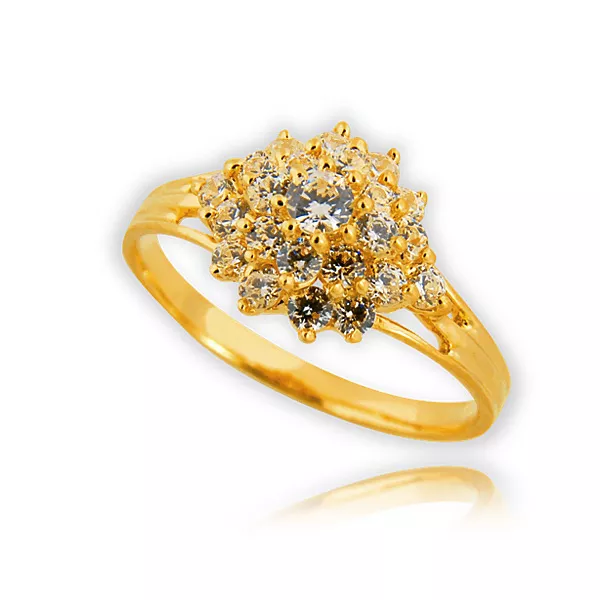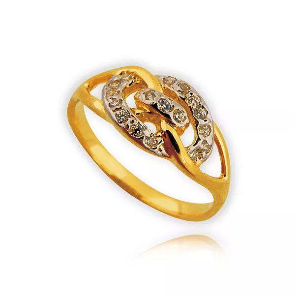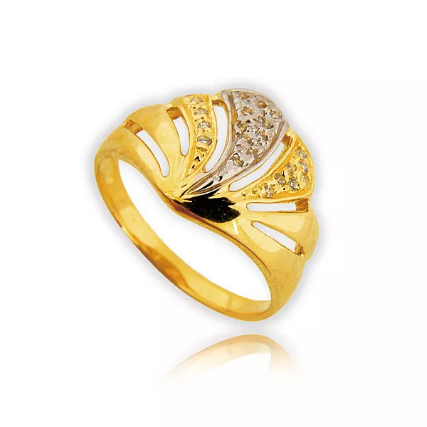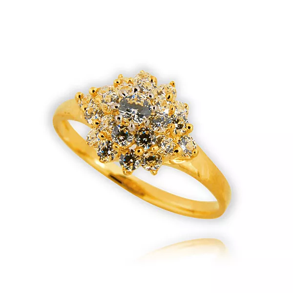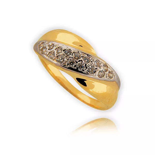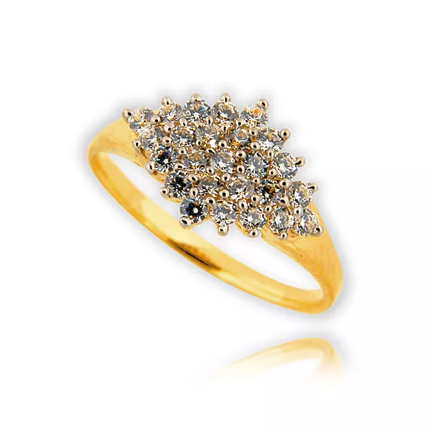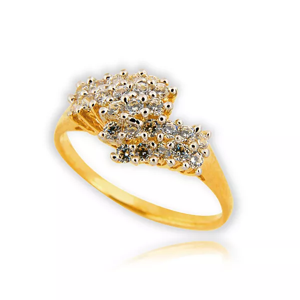 Złoty pierścionek podkreślający subtelny blask kamieni.