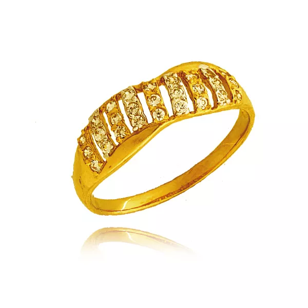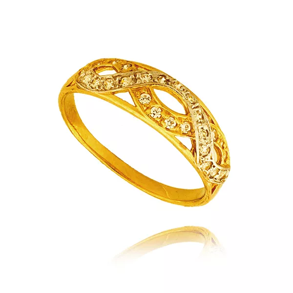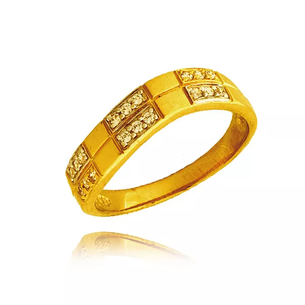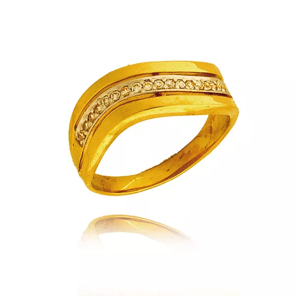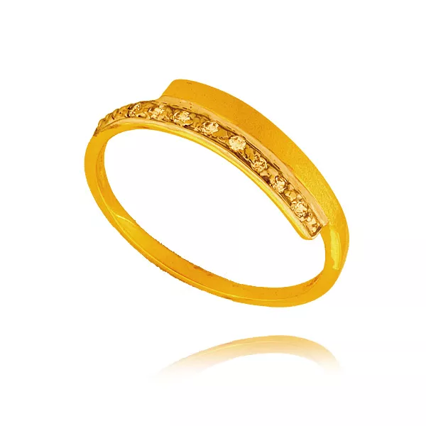 Złoty pierścionek podkreślający subtelny blask kamieni.