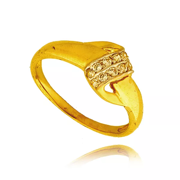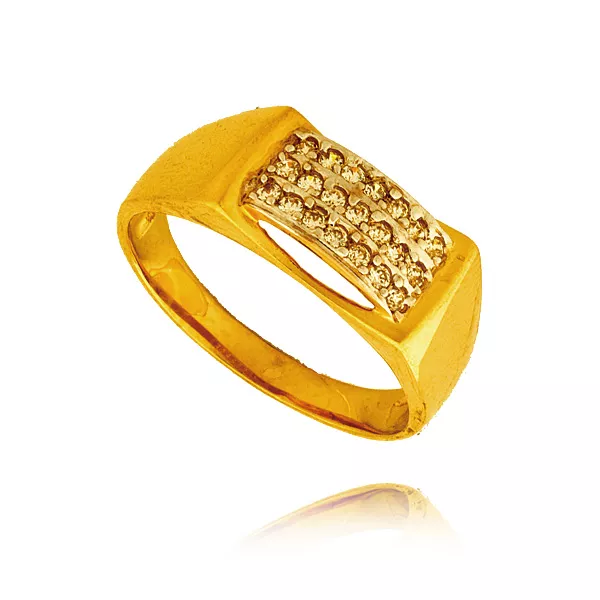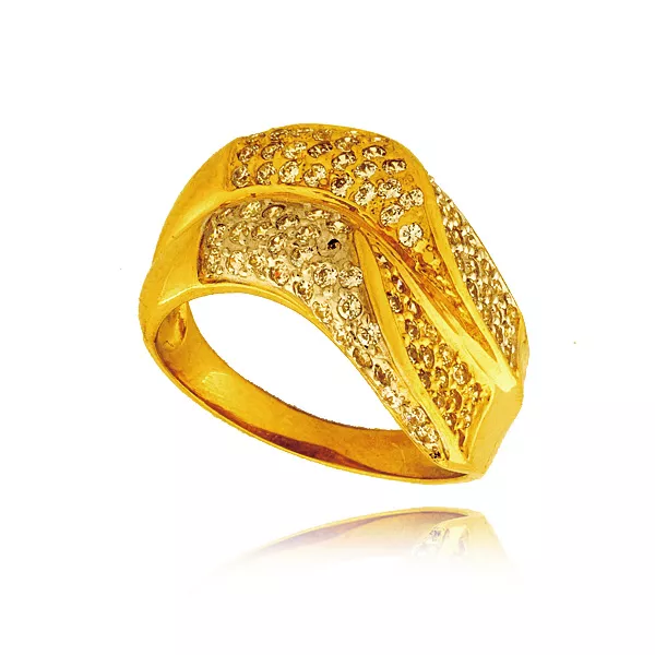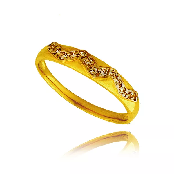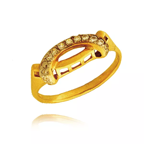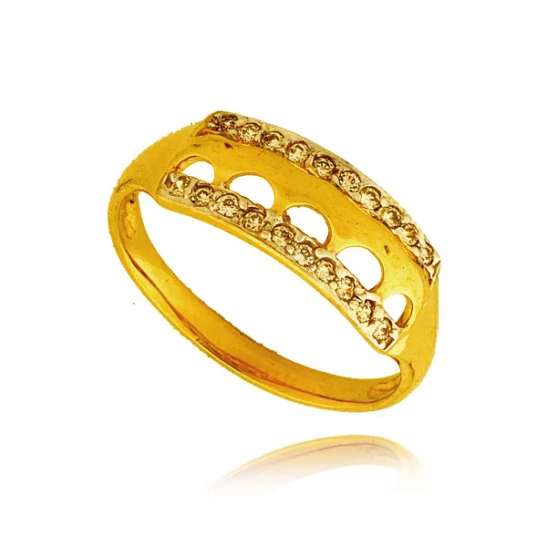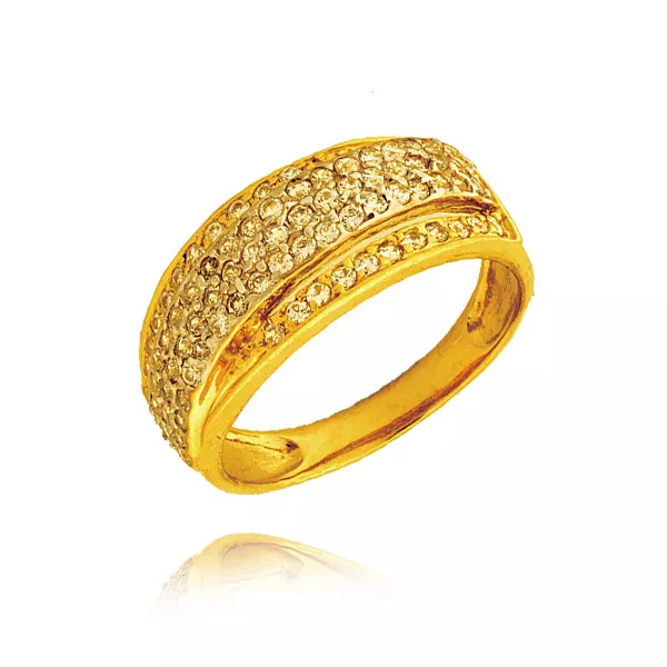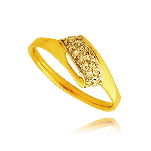 Złoty pierścionek podkreślający subtelny blask kamieni.
